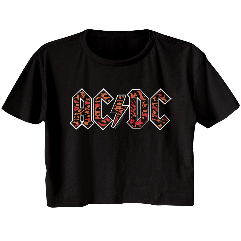 AC/DC Leopard Print Logo Ladies Black Crop Shirt
