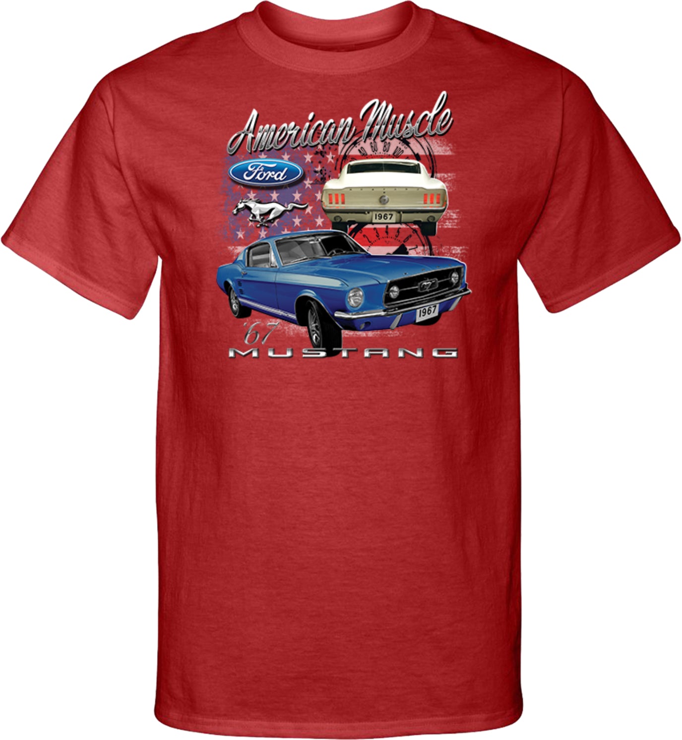 - A mens tall t-shirt featuring the classic 1967 Ford Mustang