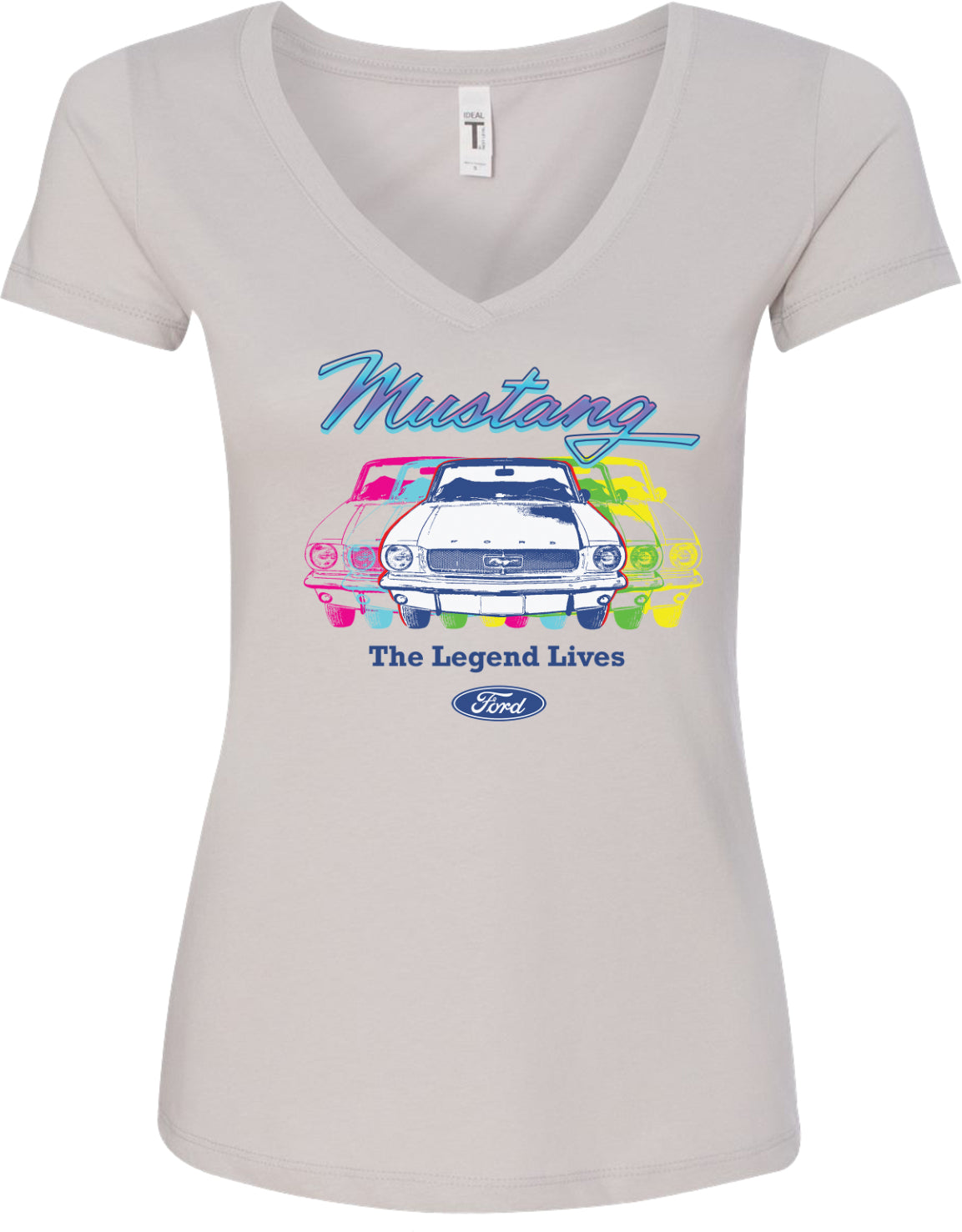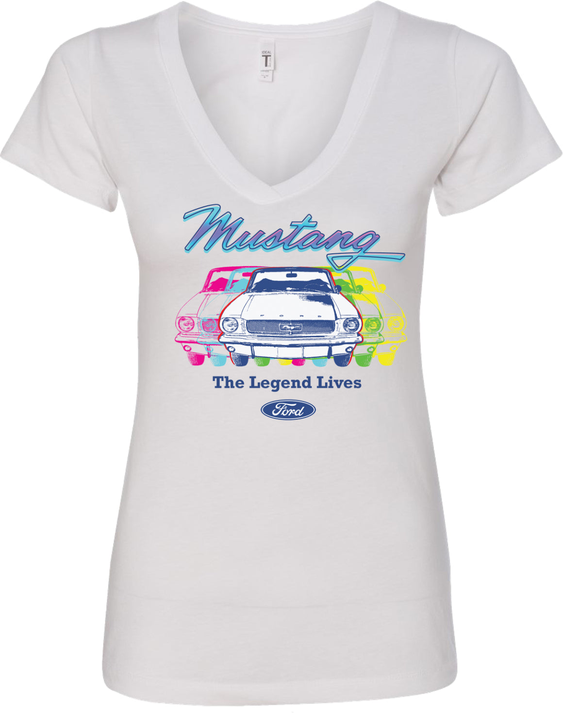 Colorful Ford Mustang Ladies V-Neck Shirt Legend Lives