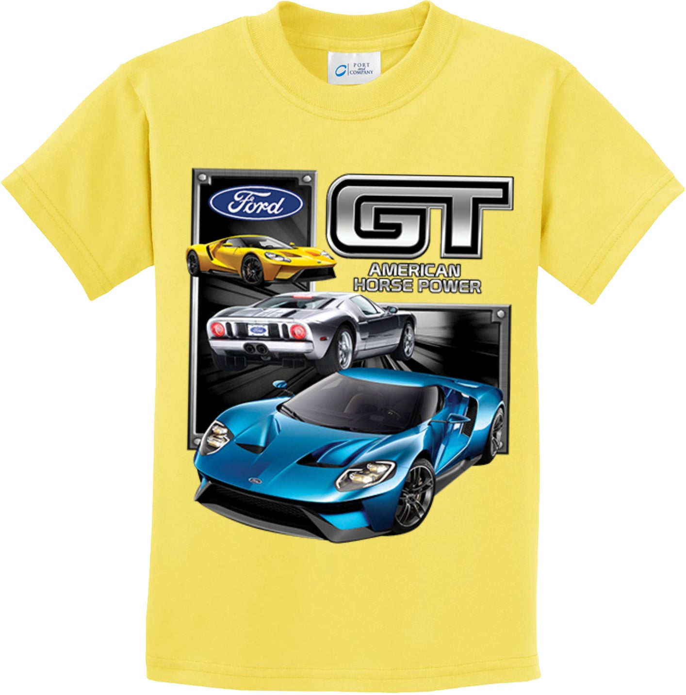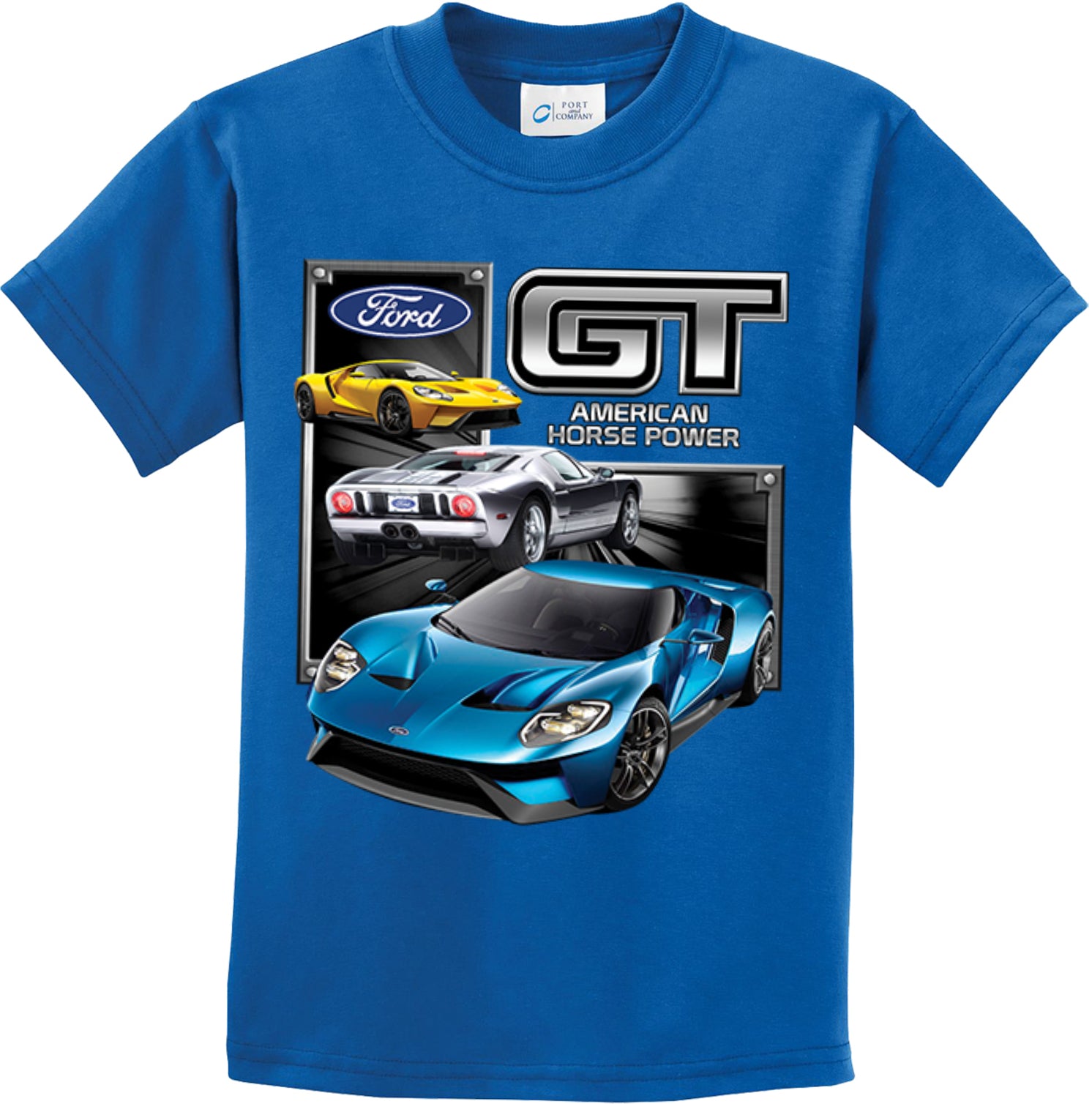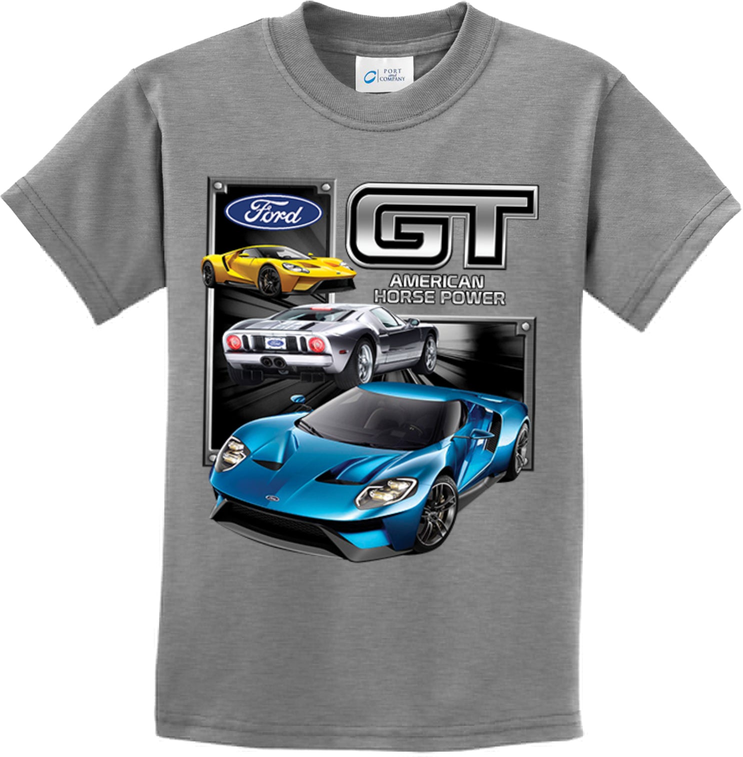 - A kids t-shirt featuring a collage of the Ford GT Supercar