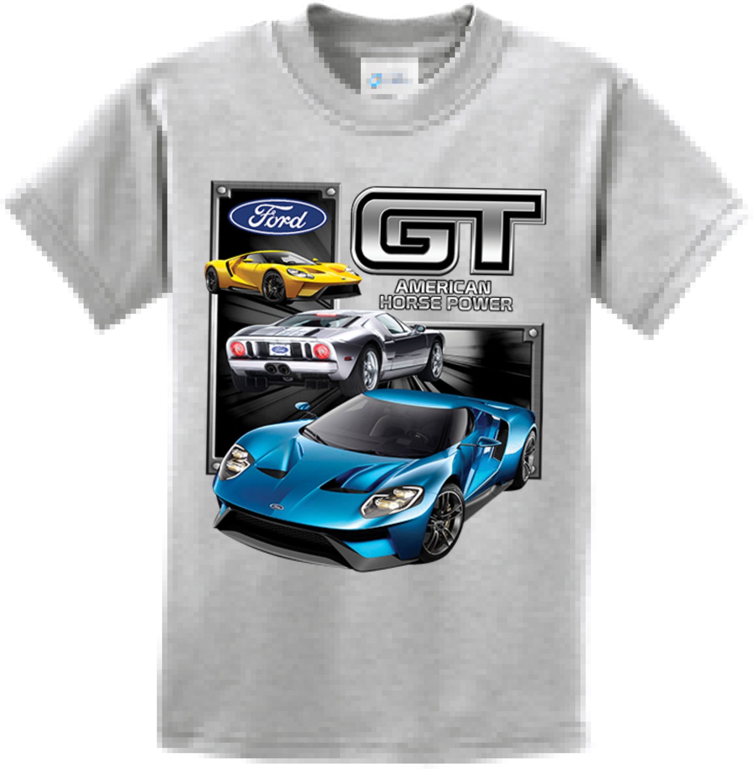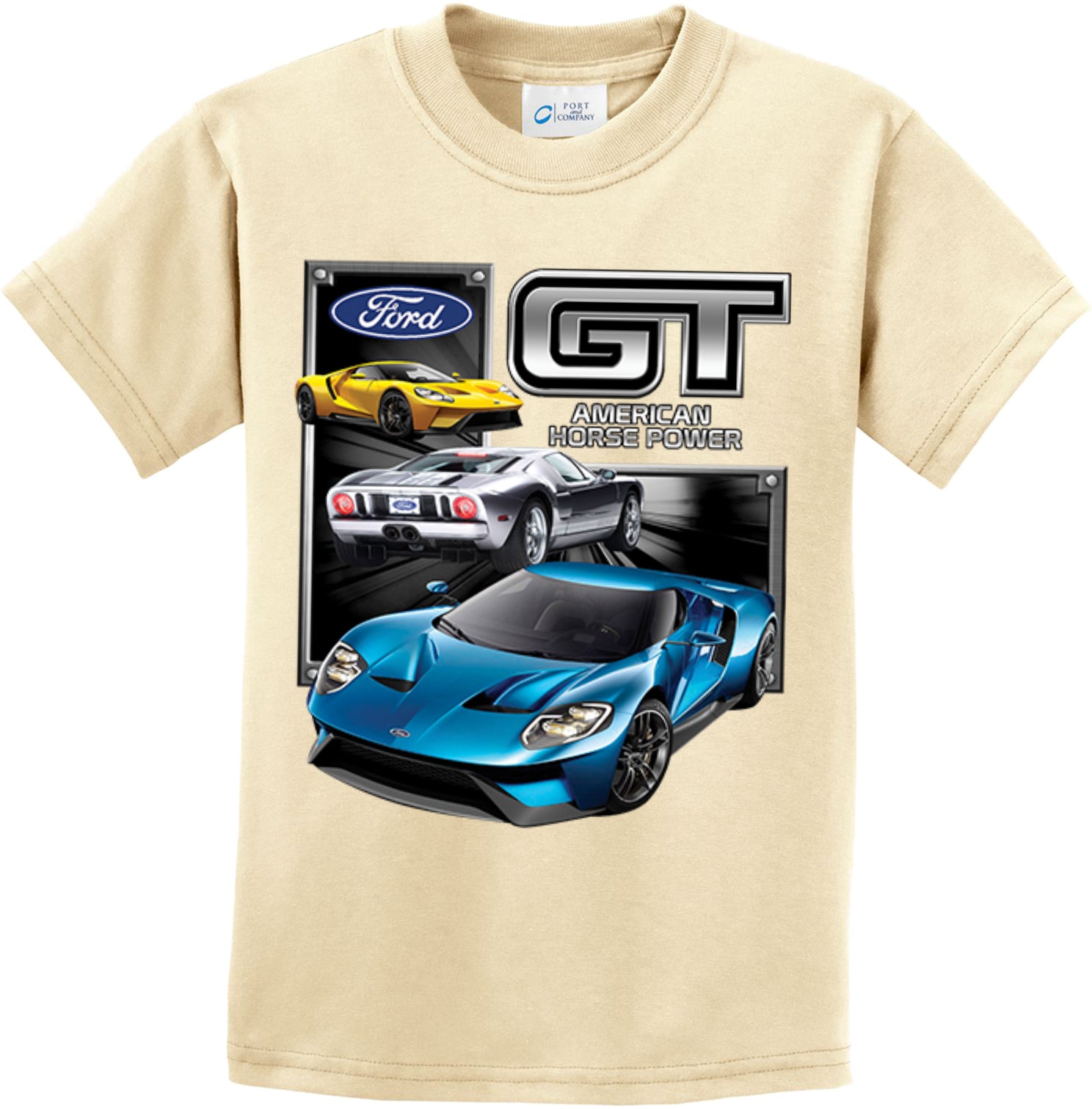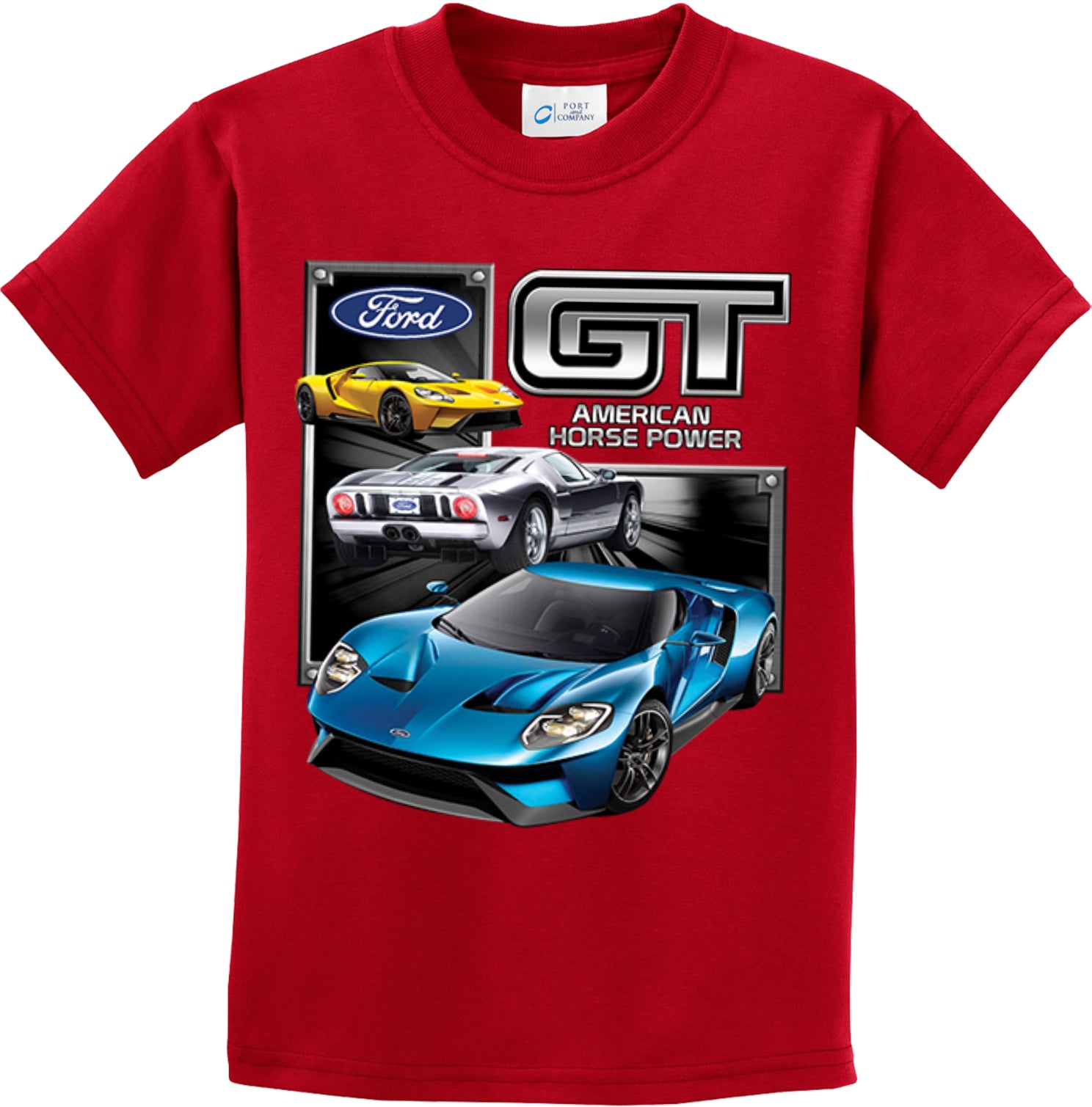 - A kids t-shirt featuring a collage of the Ford GT Supercar