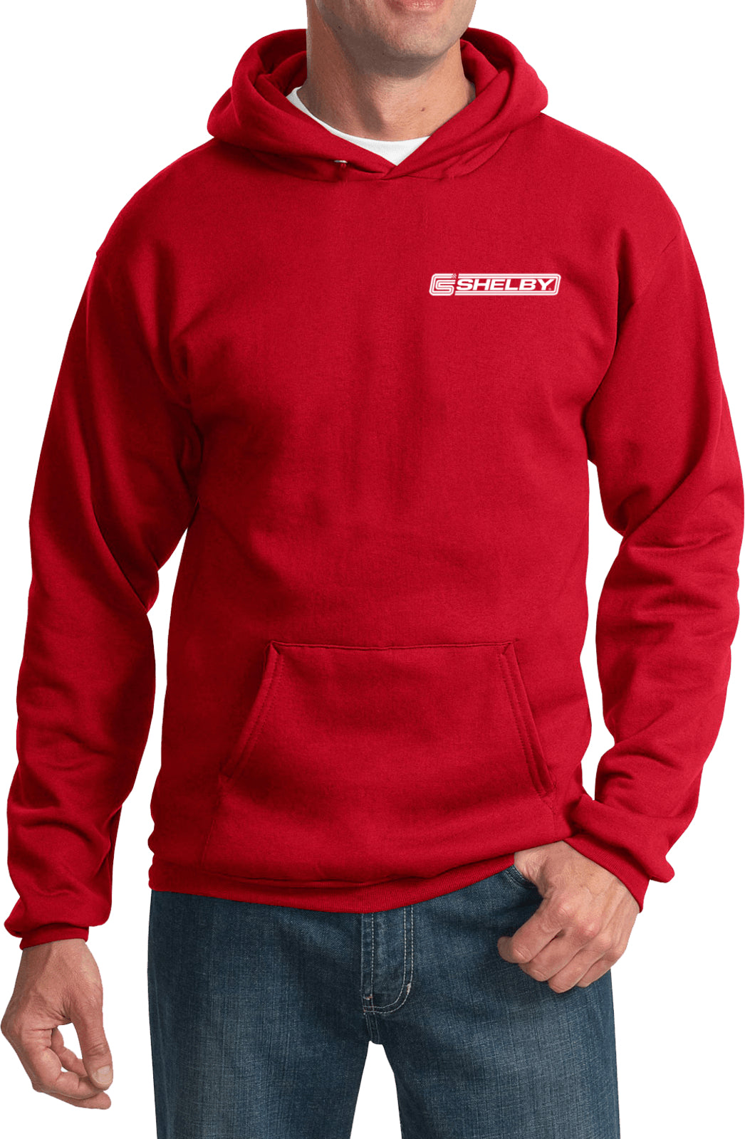 • A mens hoodie featuring the Shelby logo as a pocket print