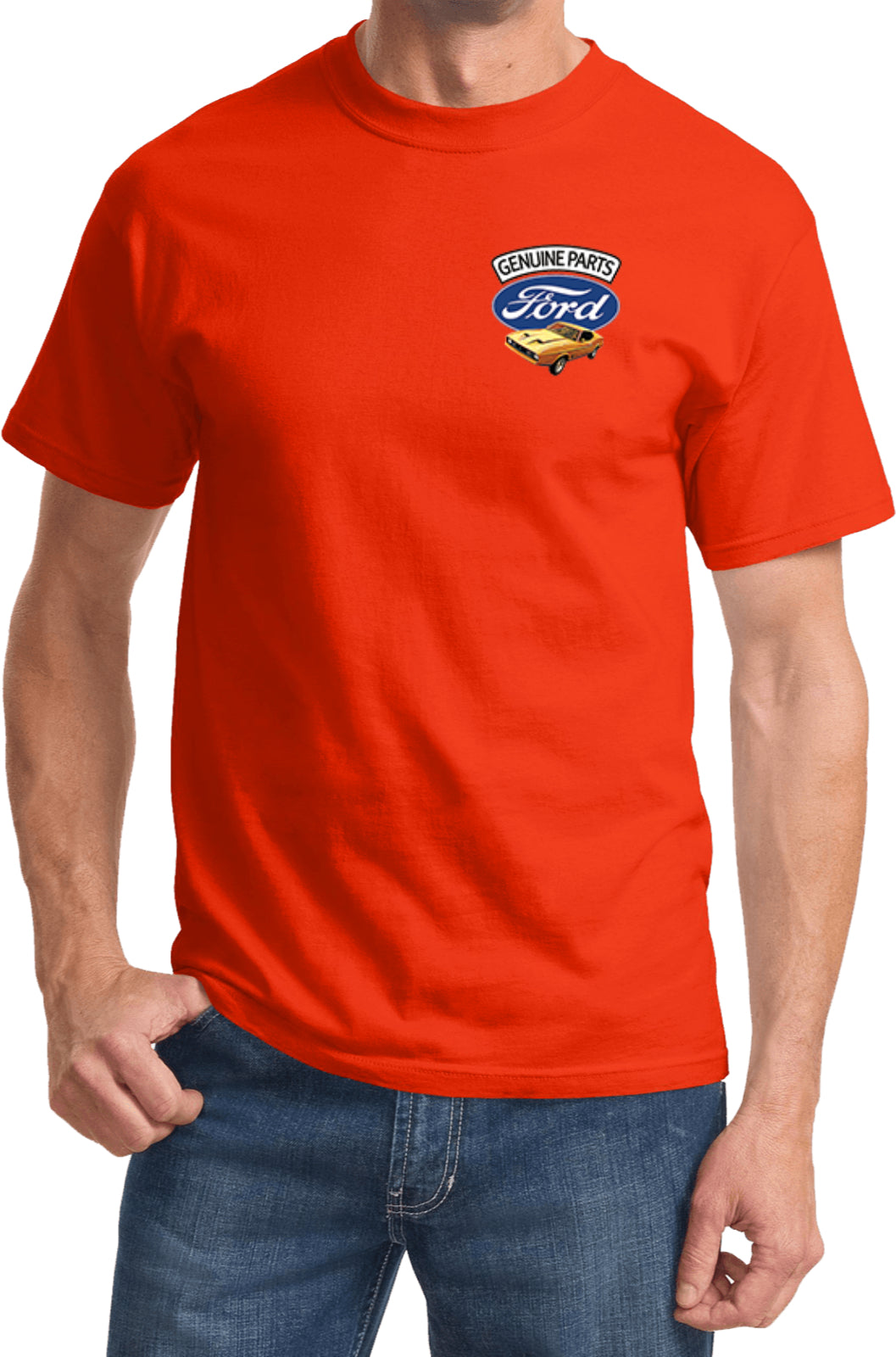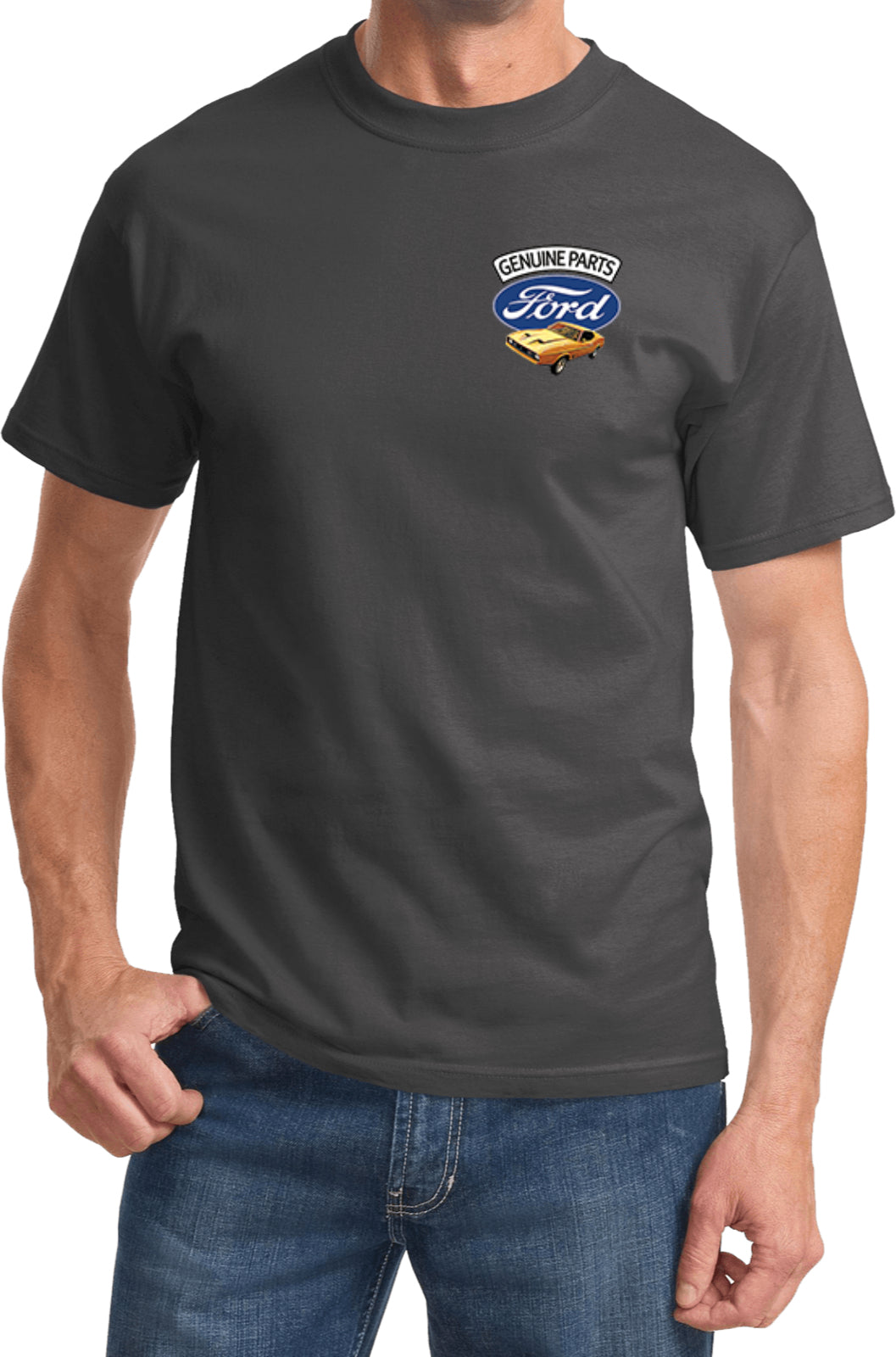 - A mens t-shirt featuring a classic Ford Mustang Genuine Parts design