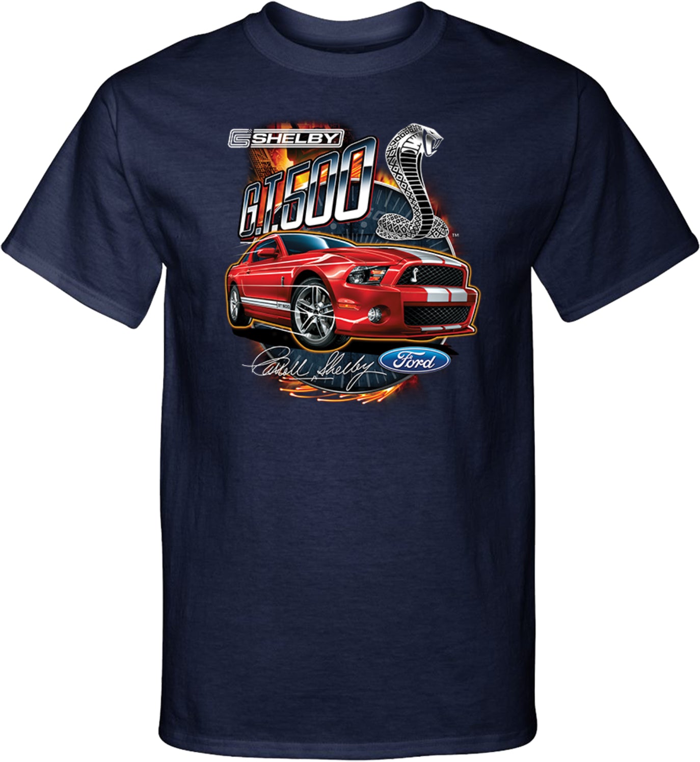 • A Ford tall t-shirt featuring a red Mustang Shelby GT500
