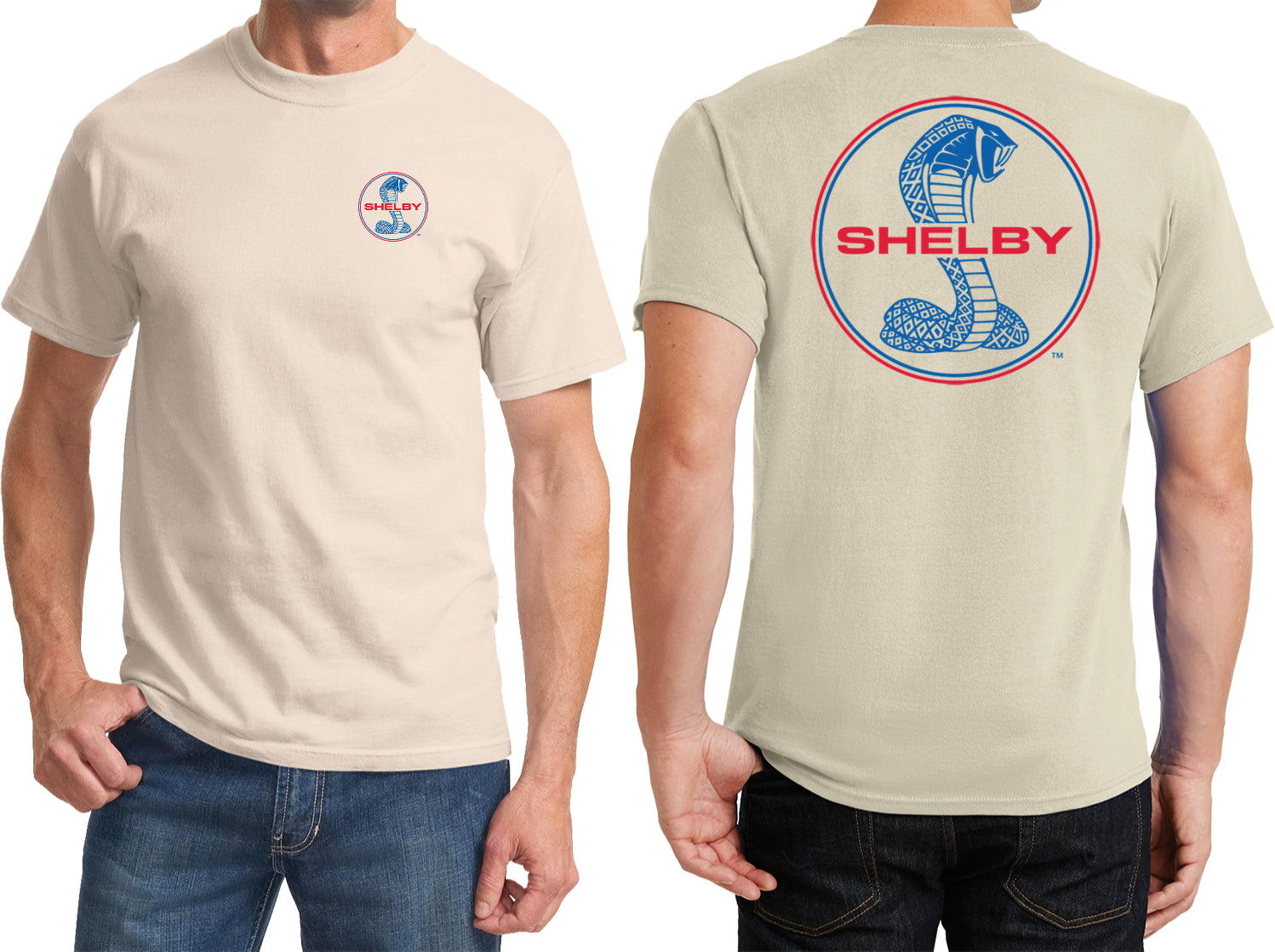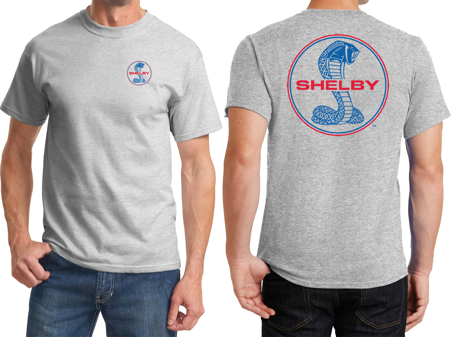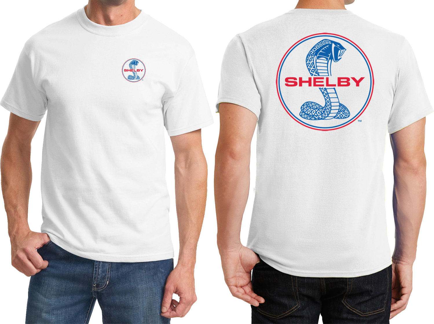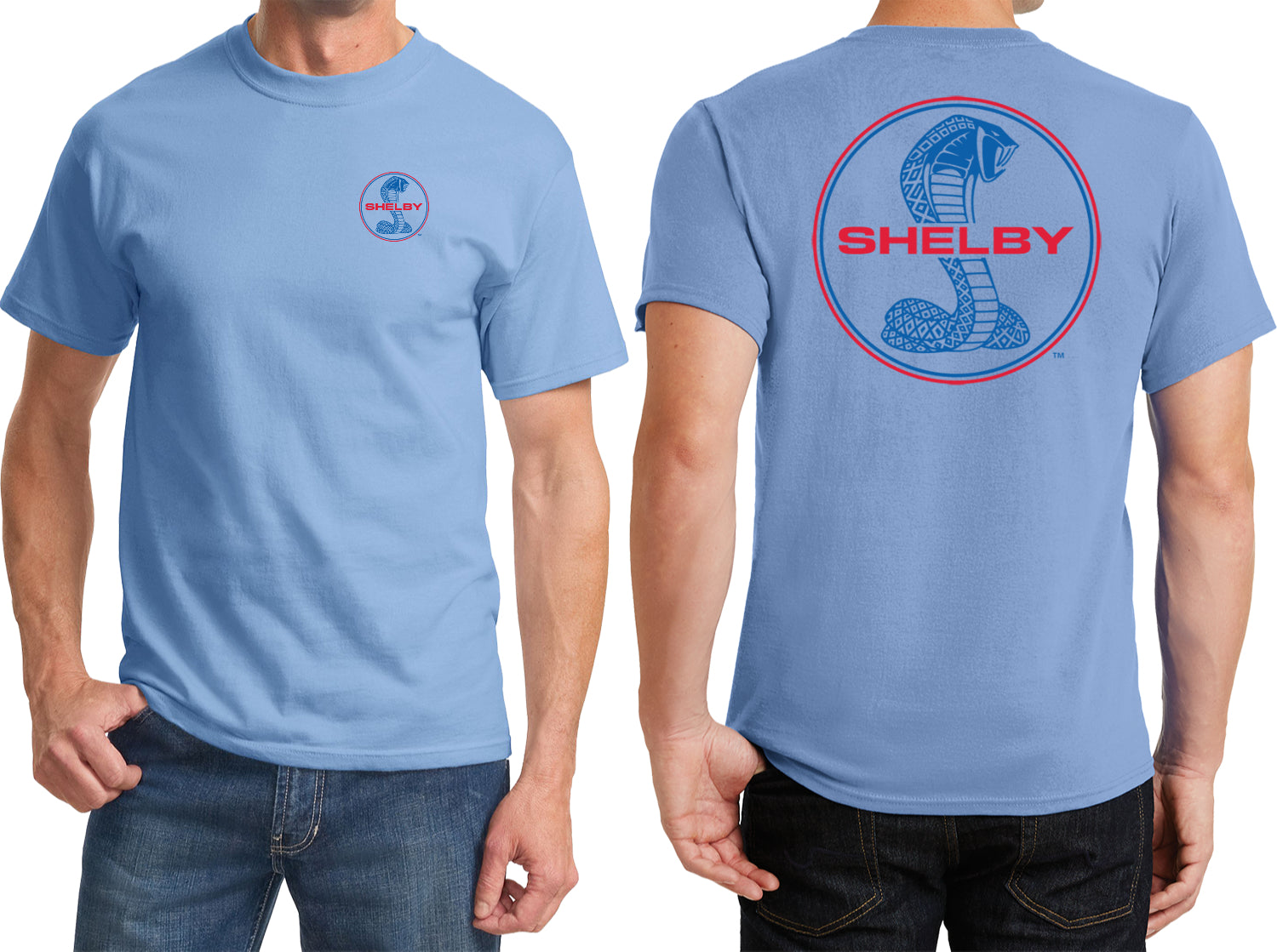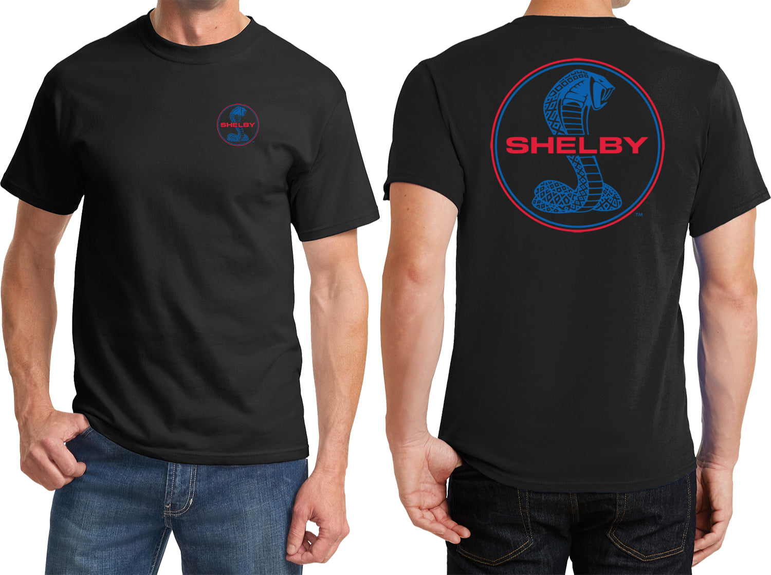 Ford Mustang T-shirt Shelby Blue and Red Logo Front and Back