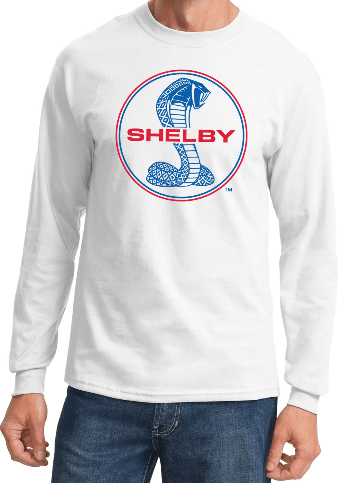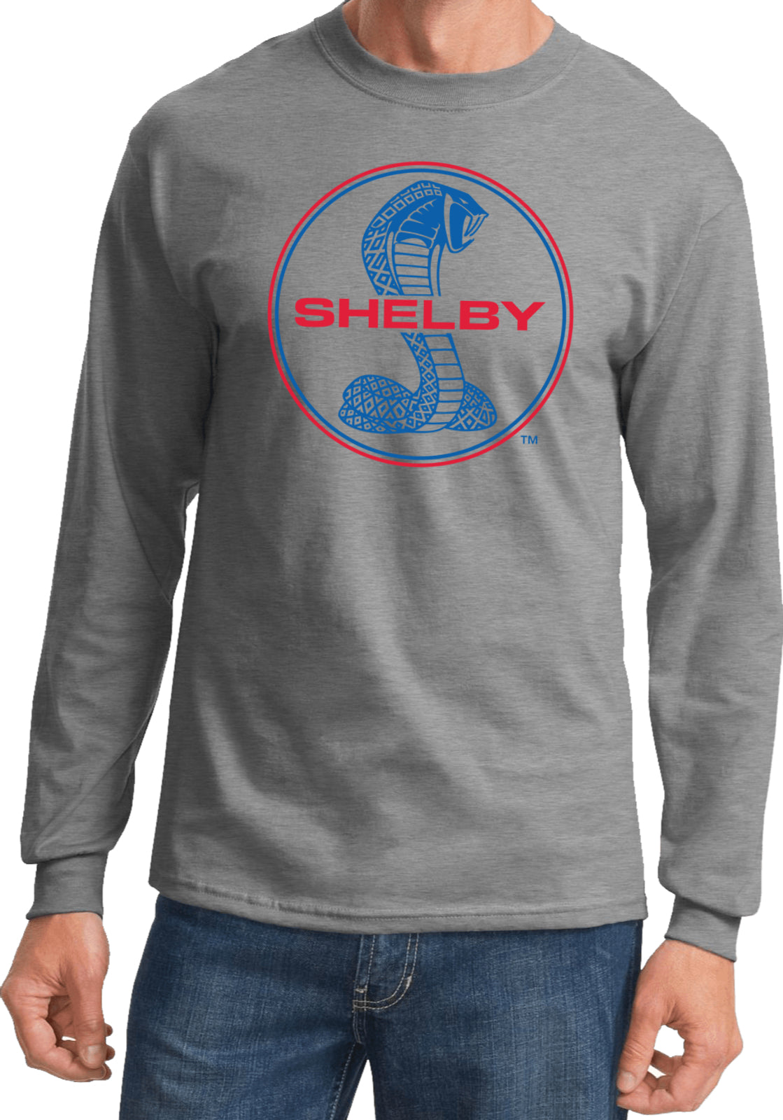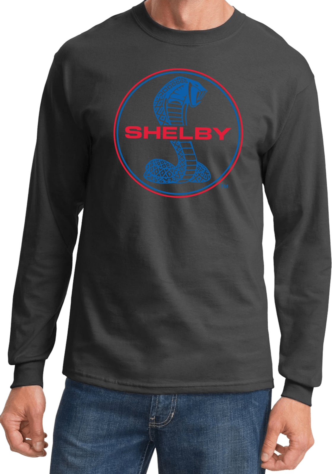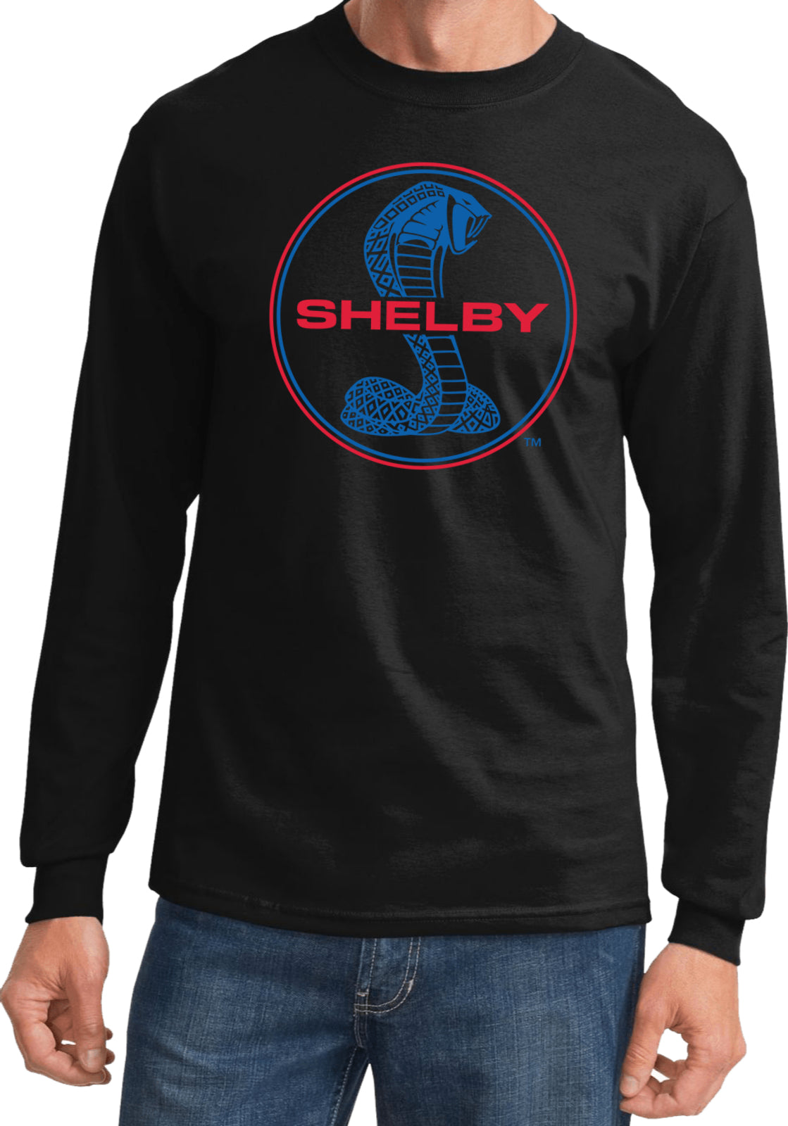 Ford Mustang T-shirt Shelby Blue and Red Logo Long Sleeve
