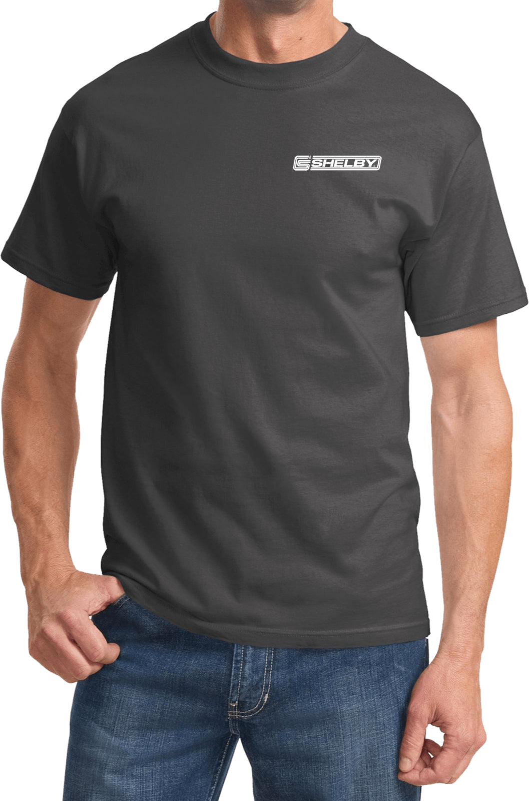 • A mens t-shirt featuring the Shelby logo as a pocket print