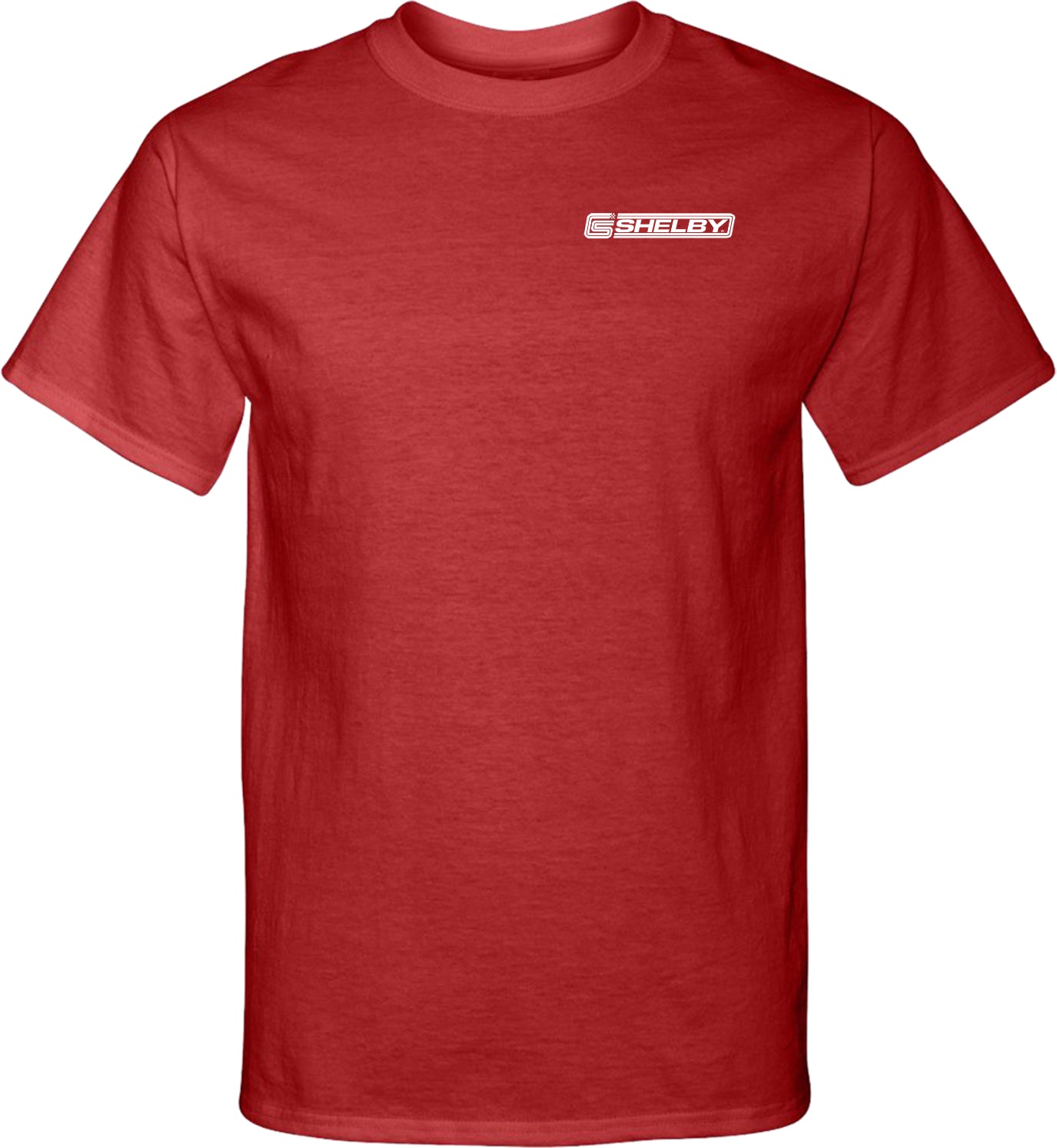 • A mens tall t-shirt featuring the Shelby logo as a pocket print