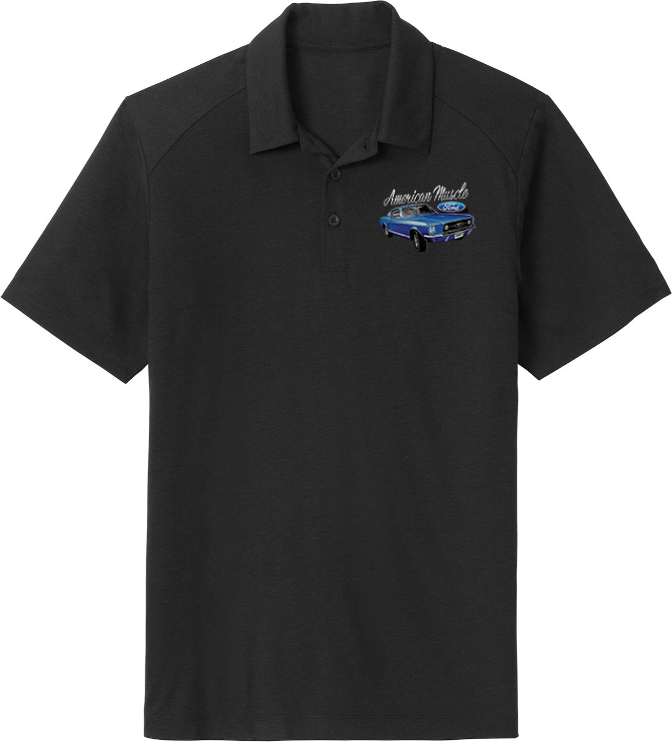 - A mens tri blend polo shirt featuring Ford American Muscle 1967 Mustang
