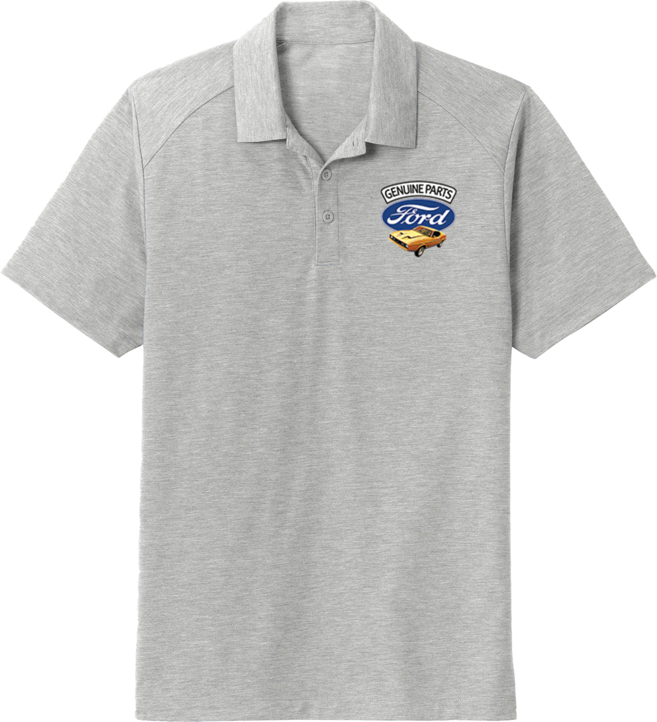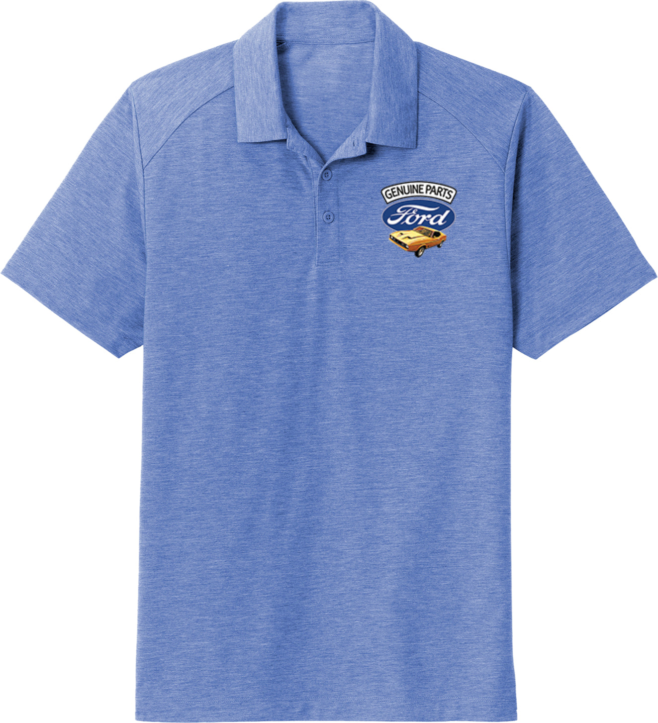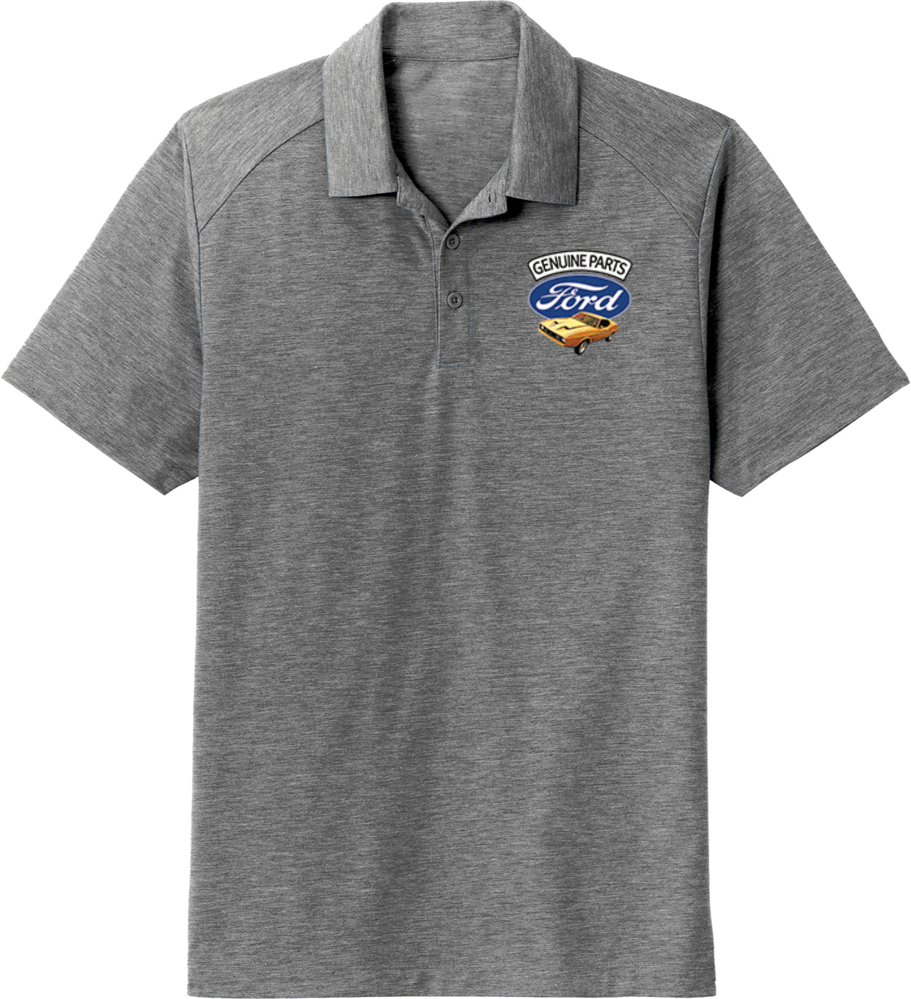 Ford Mustang Tri Blend Wicking Polo Genuine Parts Pocket Print