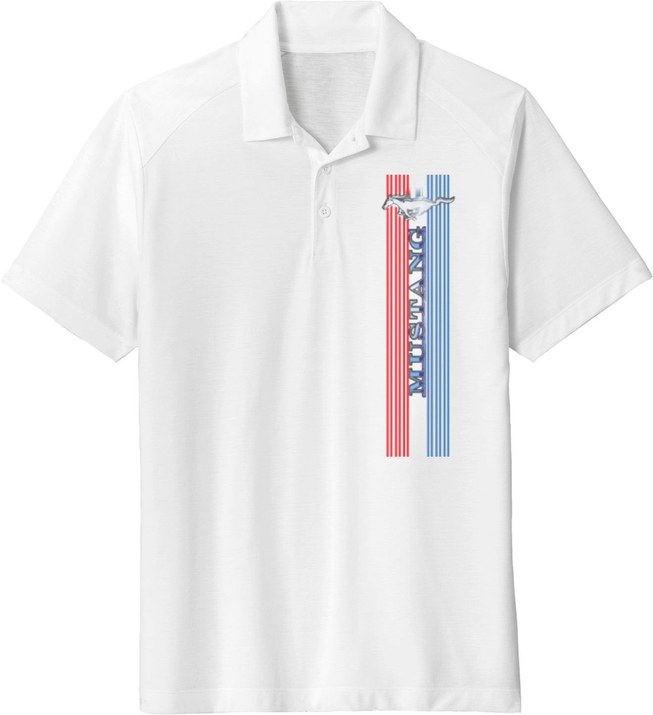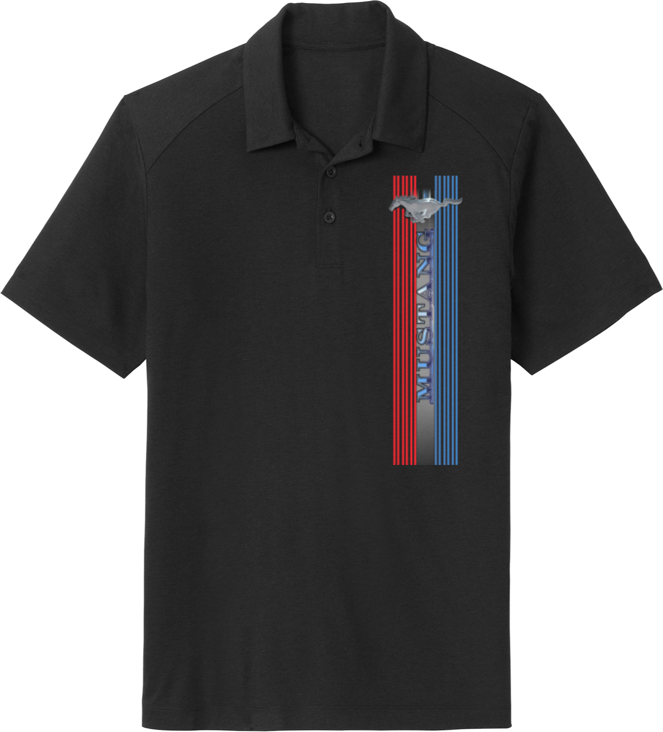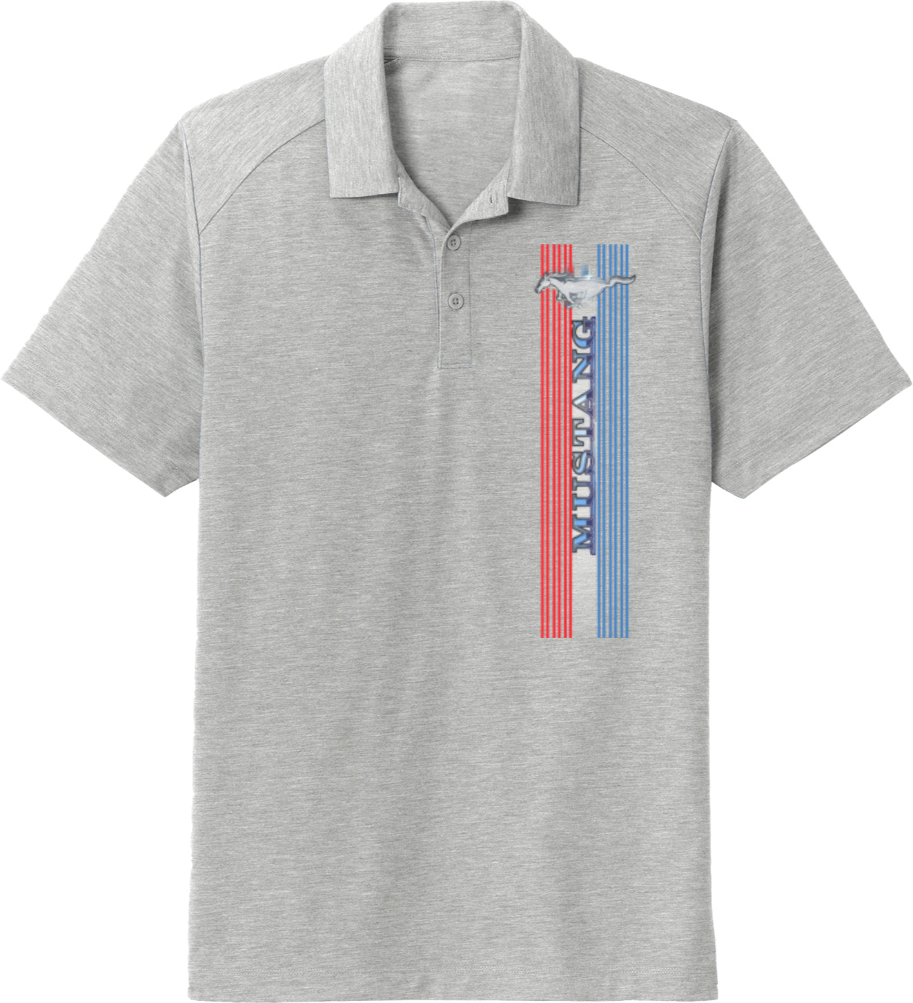 - A mens tri blend polo shirt featuring the Ford Mustang Tri Bar logo