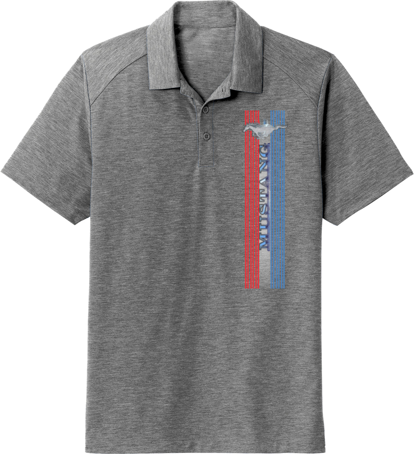 Ford Mustang Tri Blend Wicking Polo Tri Bar Logo Pocket Print