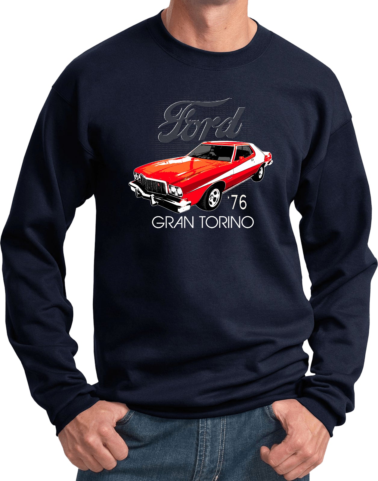 • A pullover sweatshirt featuring a red 1976 Ford Gran Torino