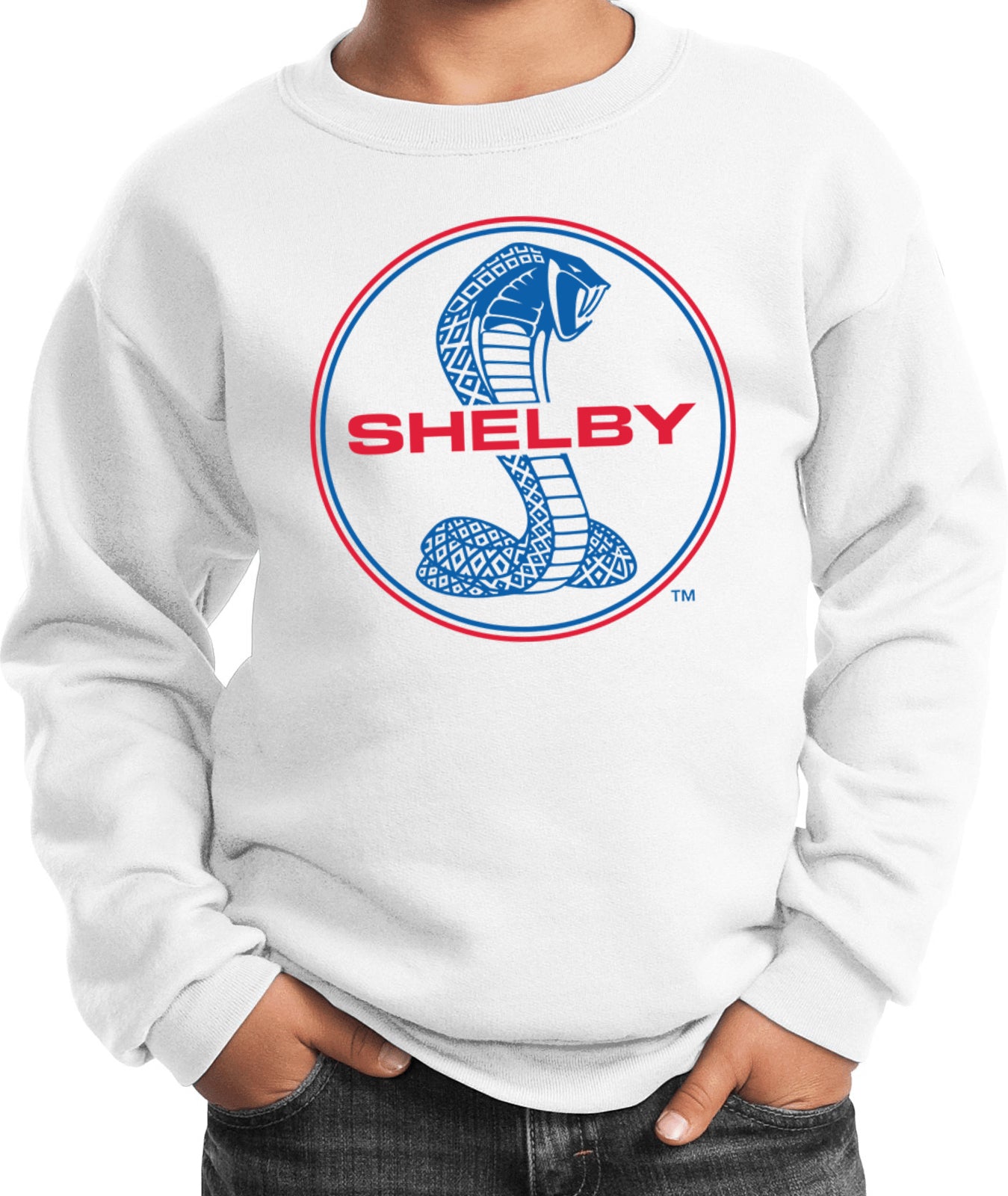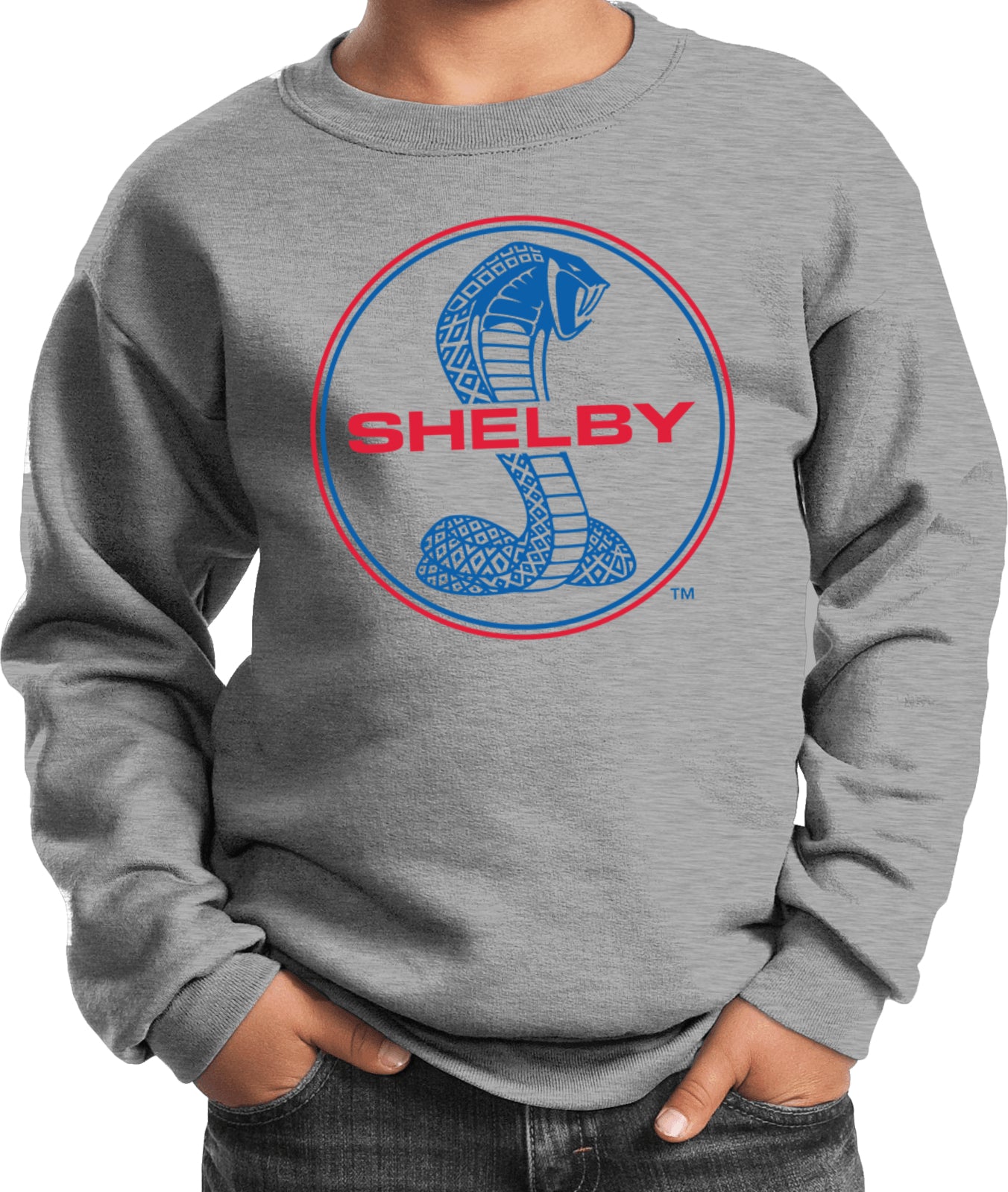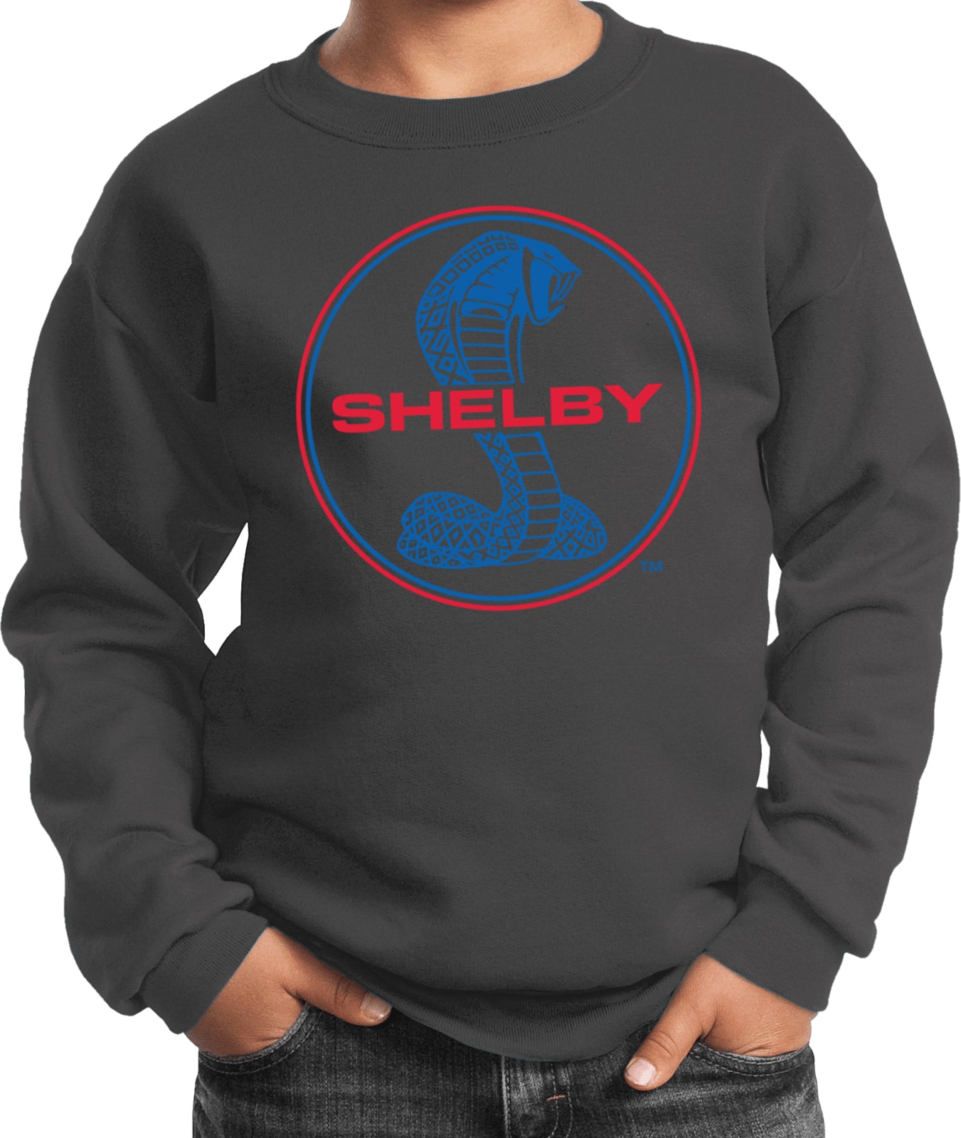 • A youth sweatshirt featuring the Ford Mustang Shelby logo