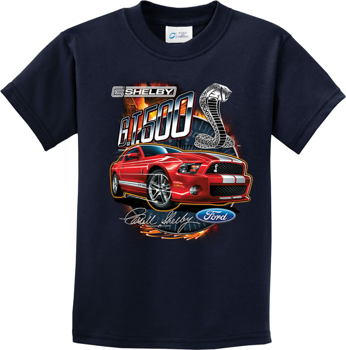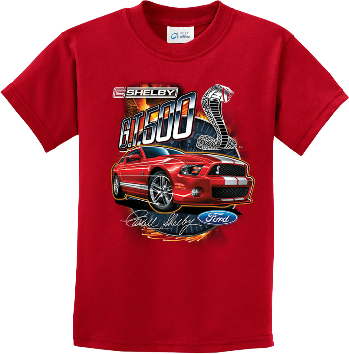 • A youth Ford t-shirt featuring a red Mustang Shelby GT500