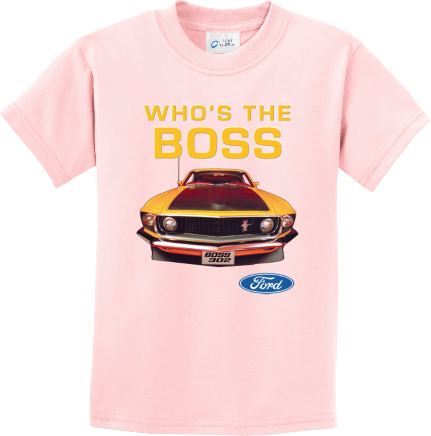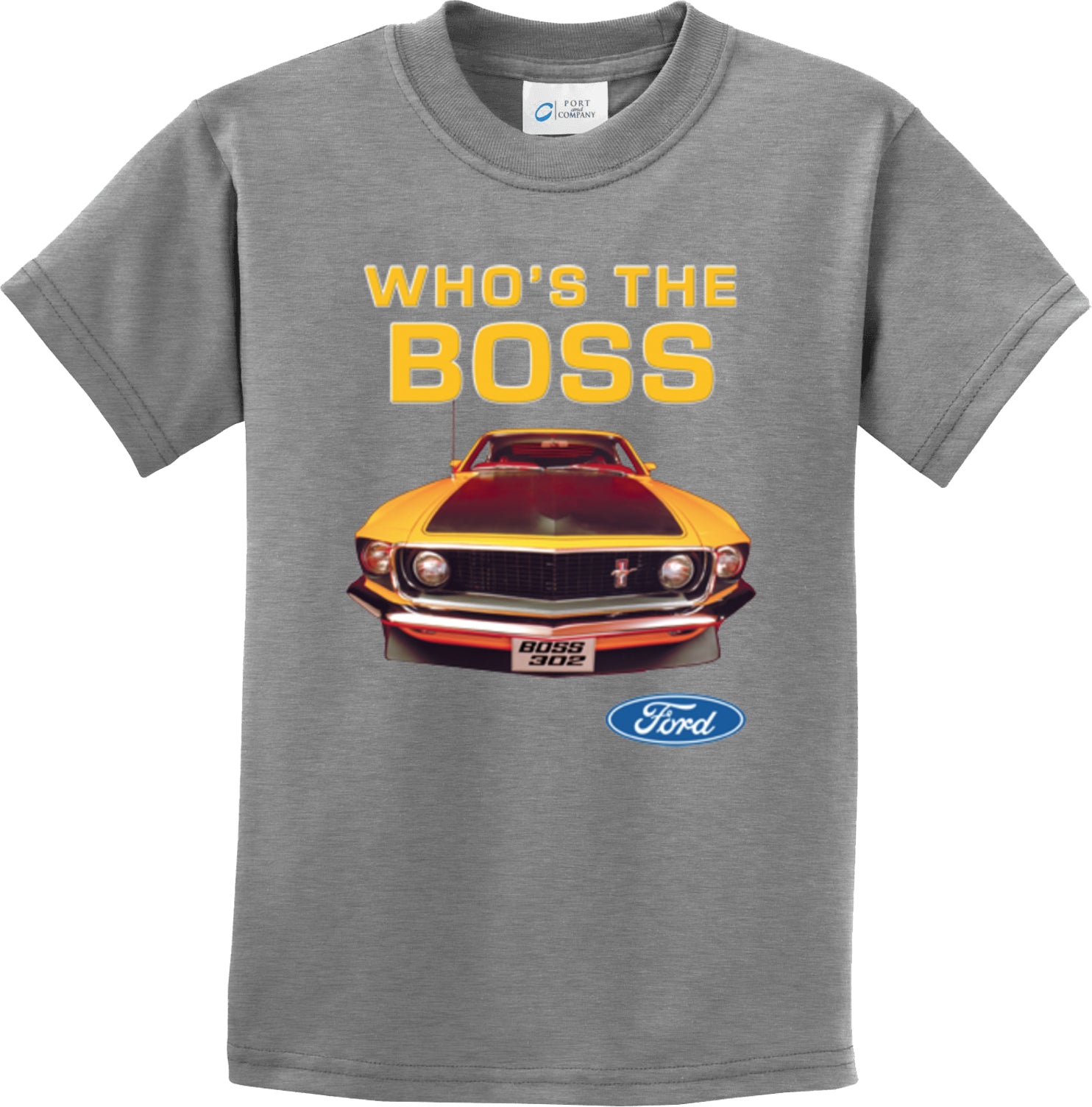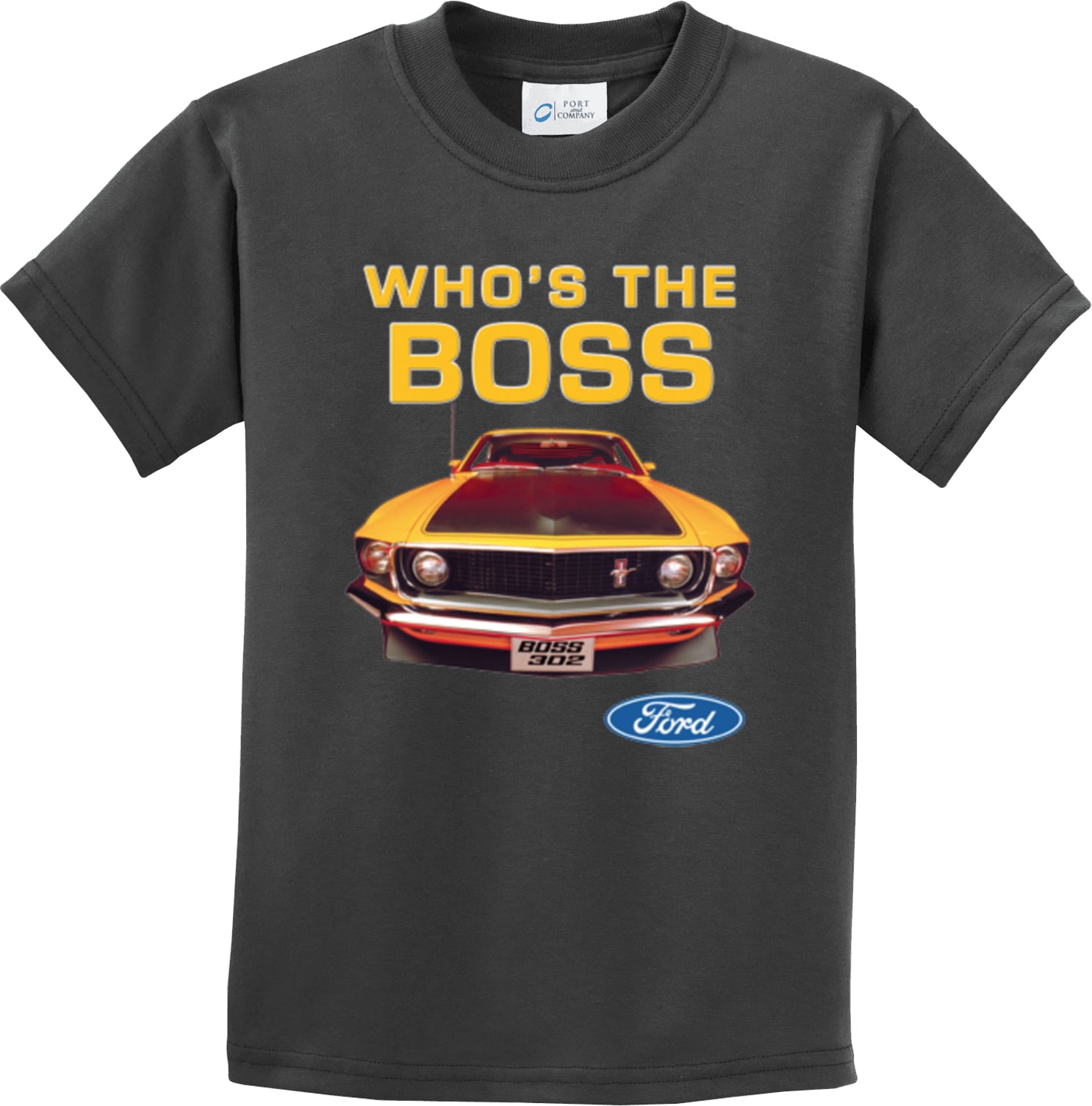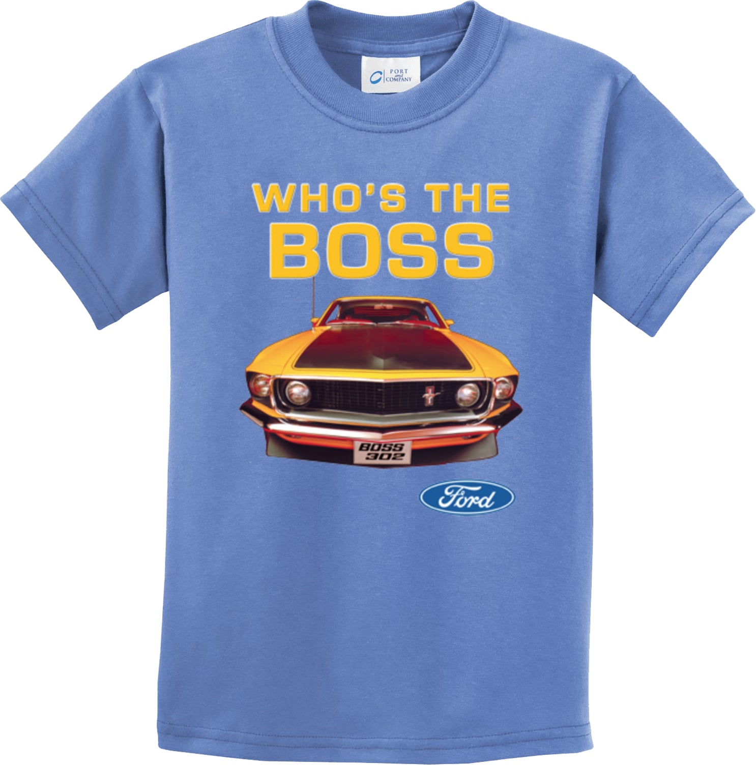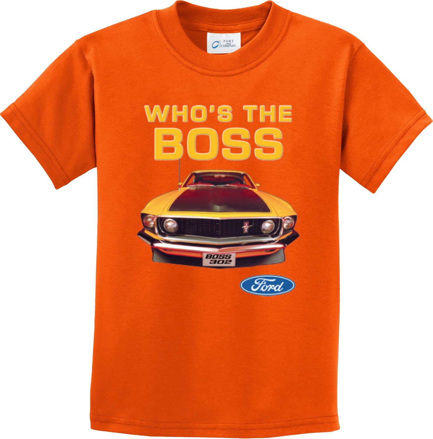 • A youth t-shirt featuring a yellow Ford Mustang Boss 302: Who's The Boss