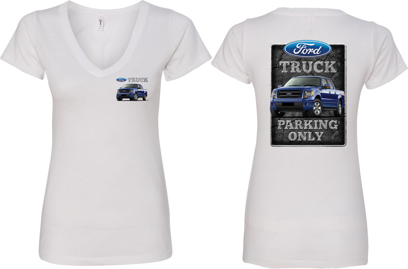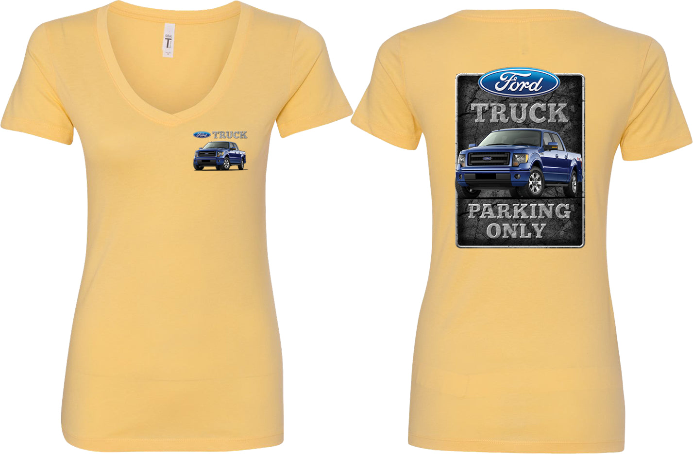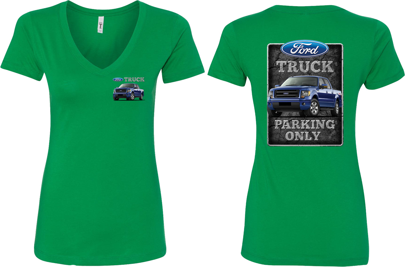 - A ladies v-neck shirt featuring a Ford F-150 Truck