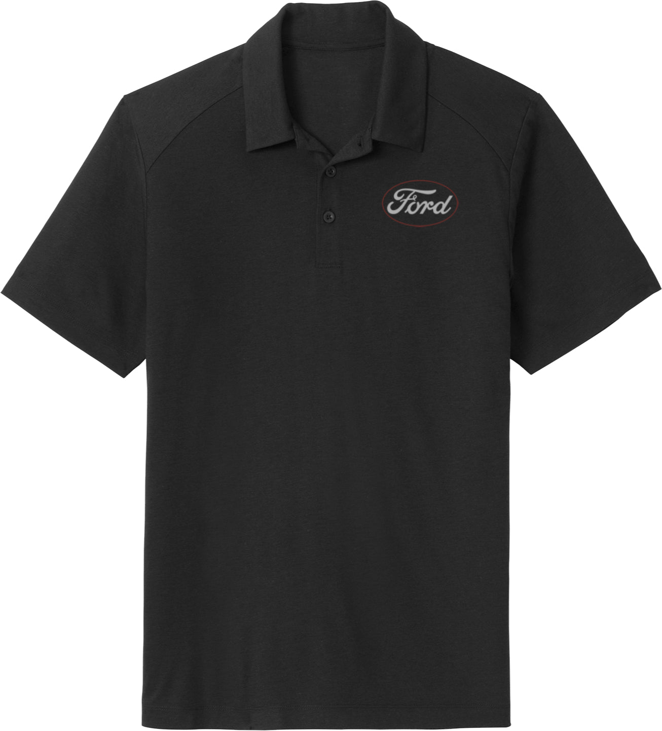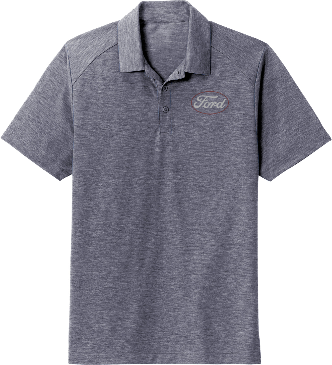 - A mens tri blend polo shirt featuring a white Ford Oval