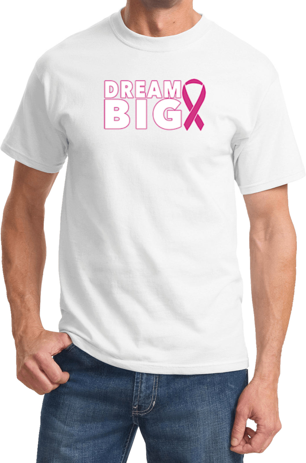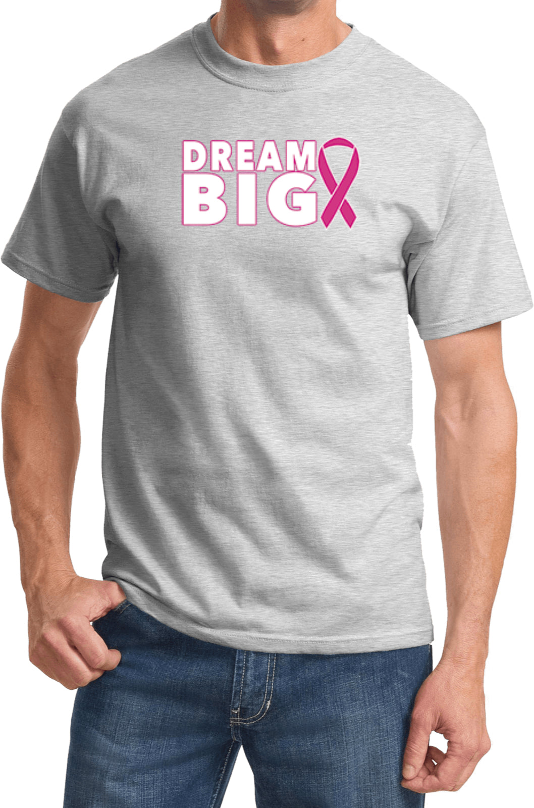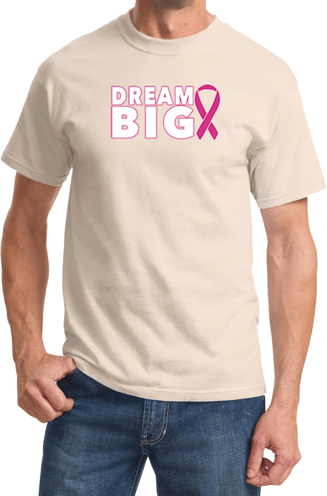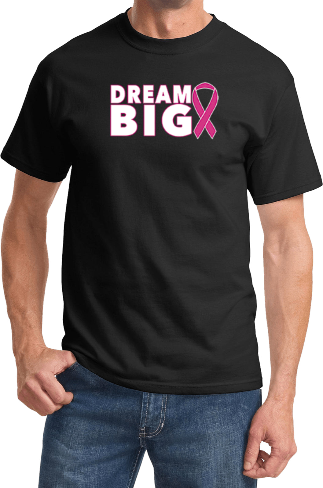 - A mens t-shirt featuring an inspirational breast cancer awareness design: Dream Big
