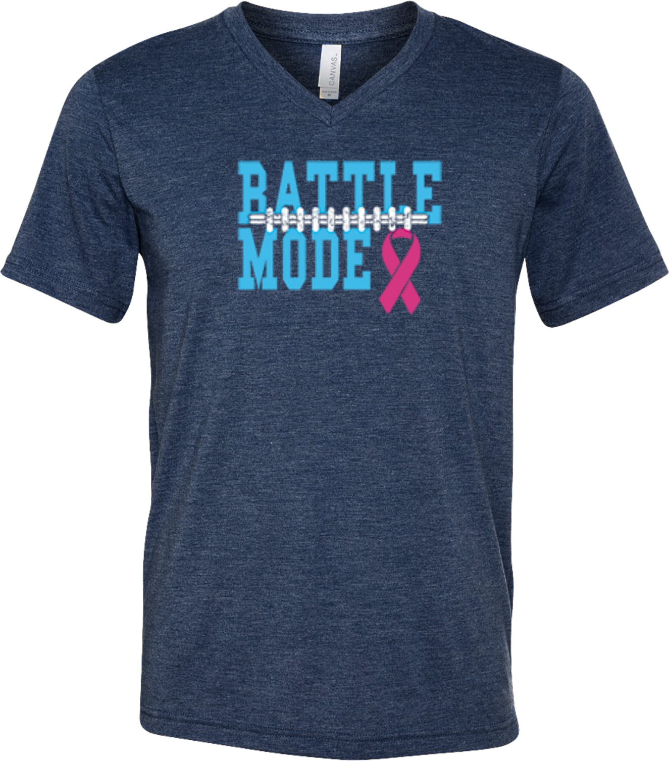 - A breast cancer tri blend v-neck shirt featuring a football inspired design, Battle Mode