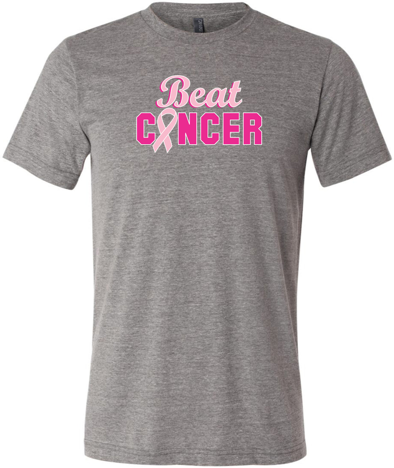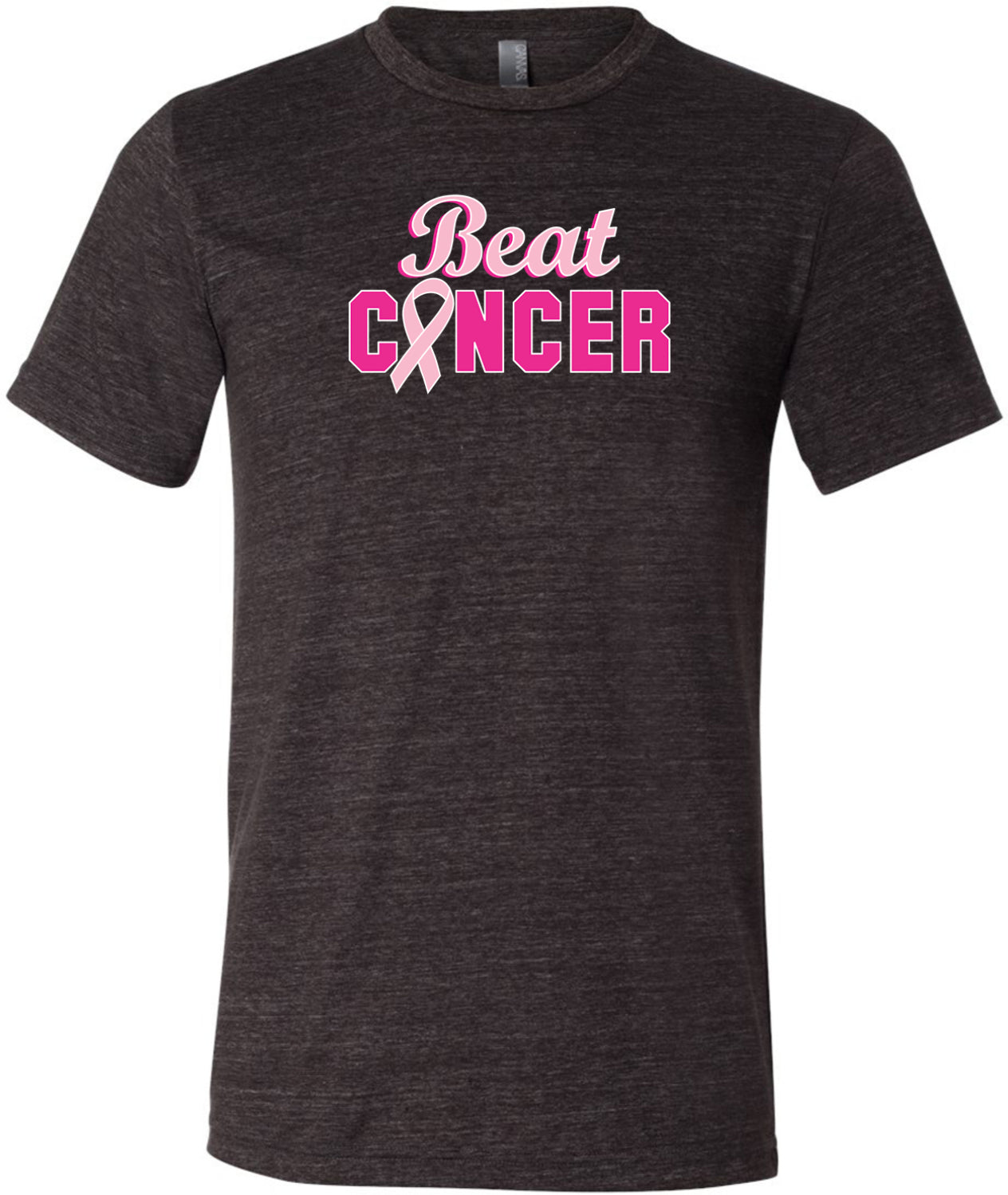 - A breast cancer awareness tri blend t-shirt featuring Beat Cancer
