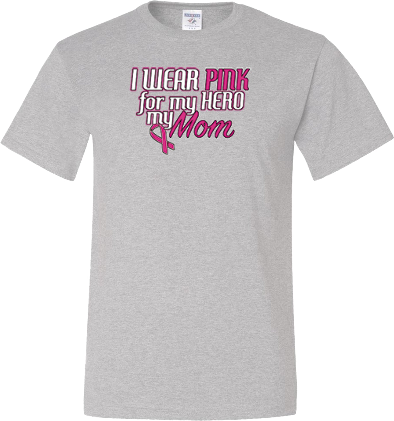 - A breast cancer tall t-shirt featuring I Wear Pink For My Hero, My Mom