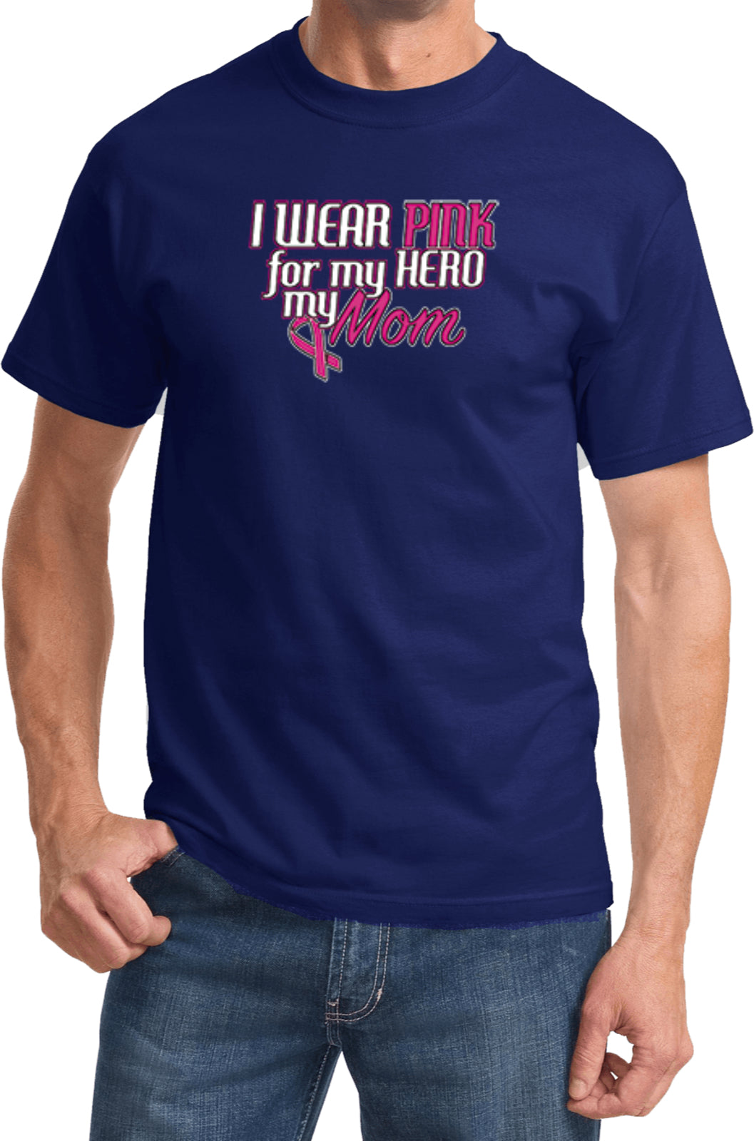 - A breast cancer t-shirt featuring I Wear Pink For My Hero, My Mom