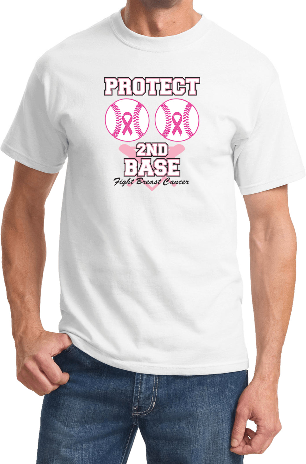 - A breast cancer t-shirt featuring a baseball inspired design: Protect 2nd Base, Fight Breast Cancer