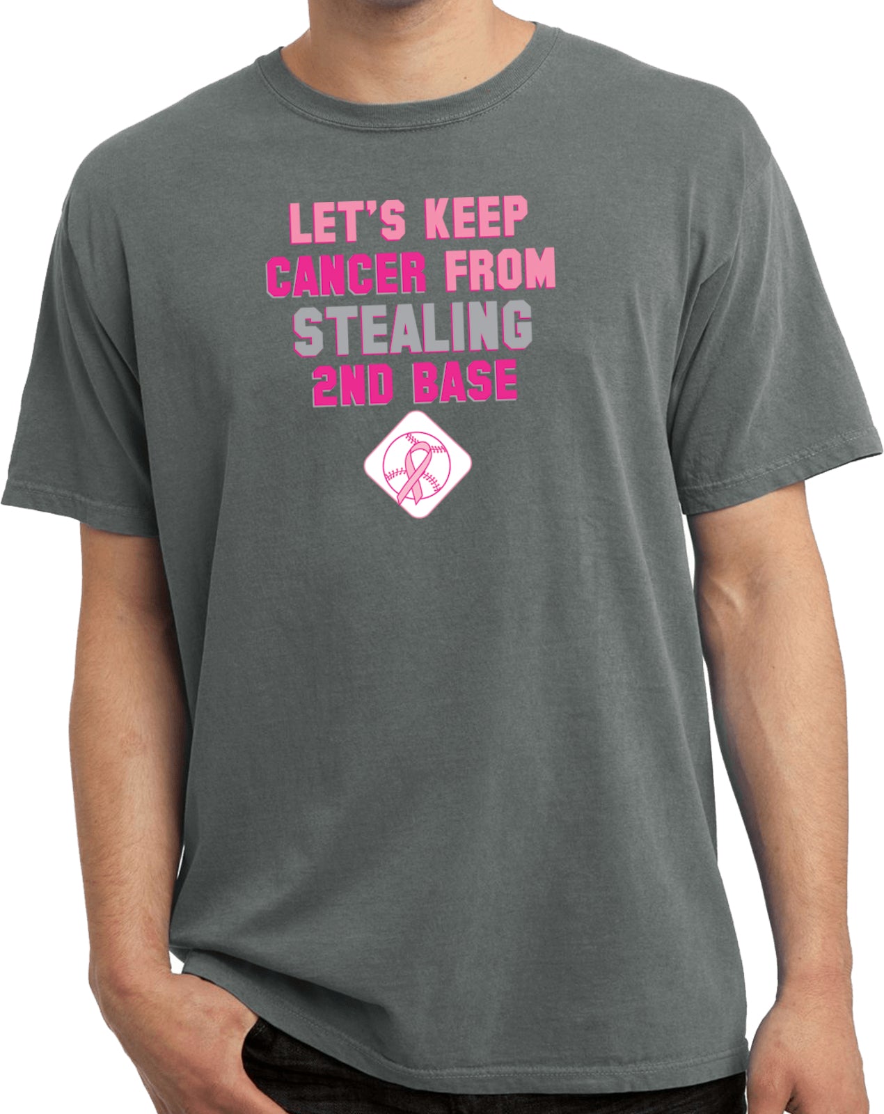 - A vintage breast cancer t-shirt featuring a baseball inspired design: Let's Keep Cancer From Stealing 2nd Base