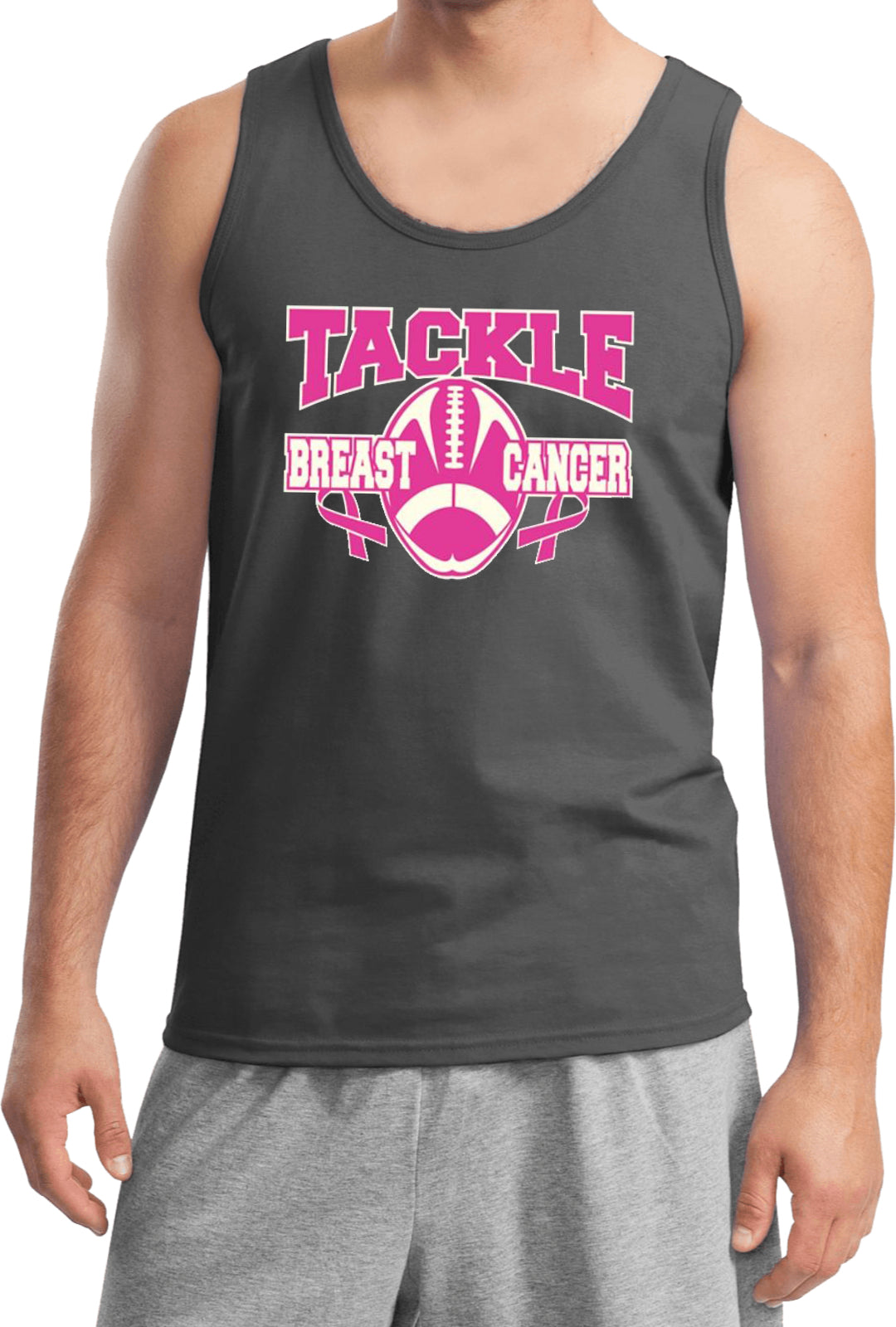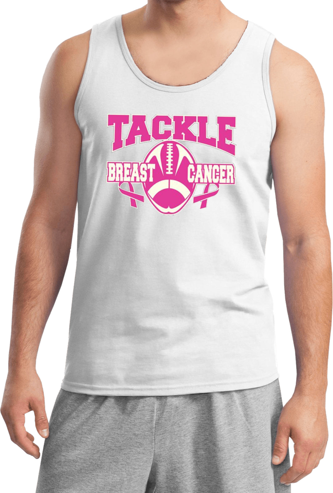 - A mens tank top featuring a football inspired breast cancer awareness design: Tackle Breast Cancer