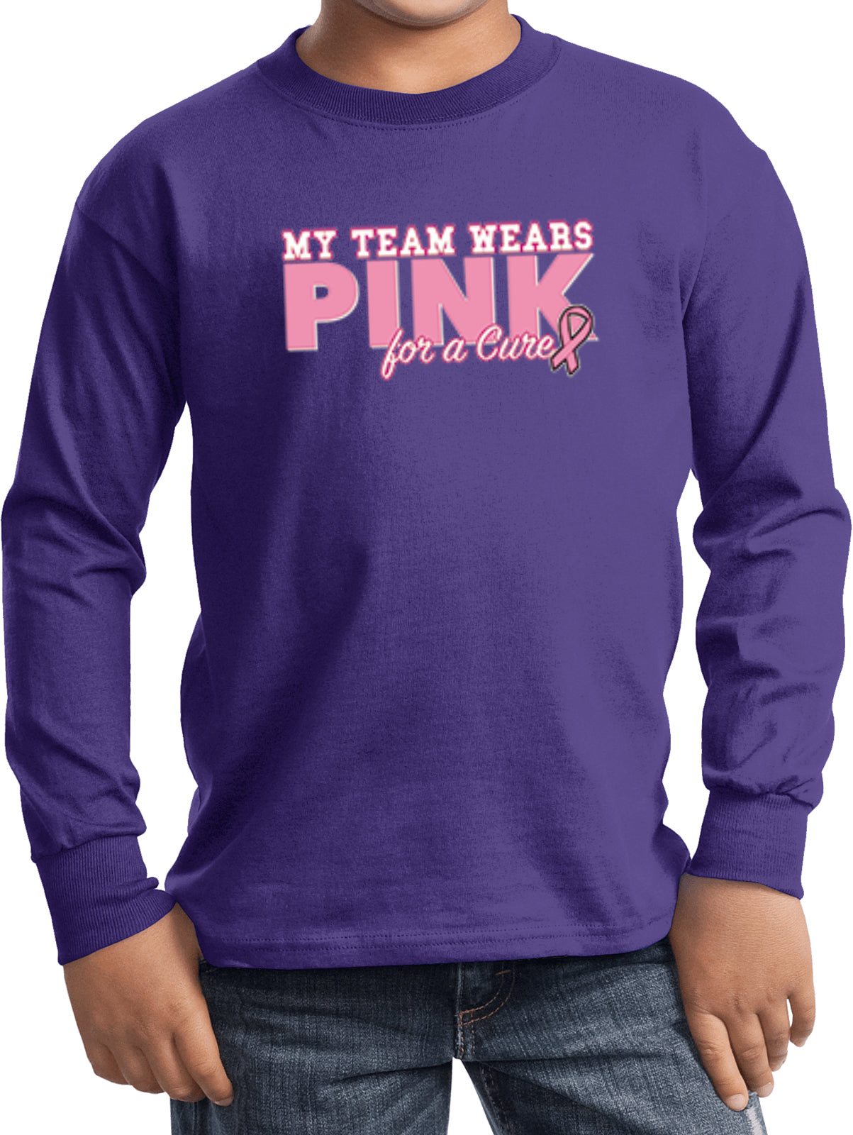 - A breast cancer youth long sleeve featuring My Team Wears Pink For a Cure