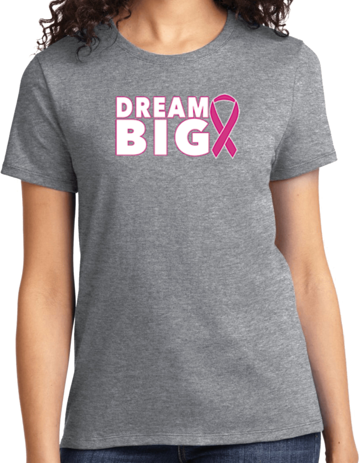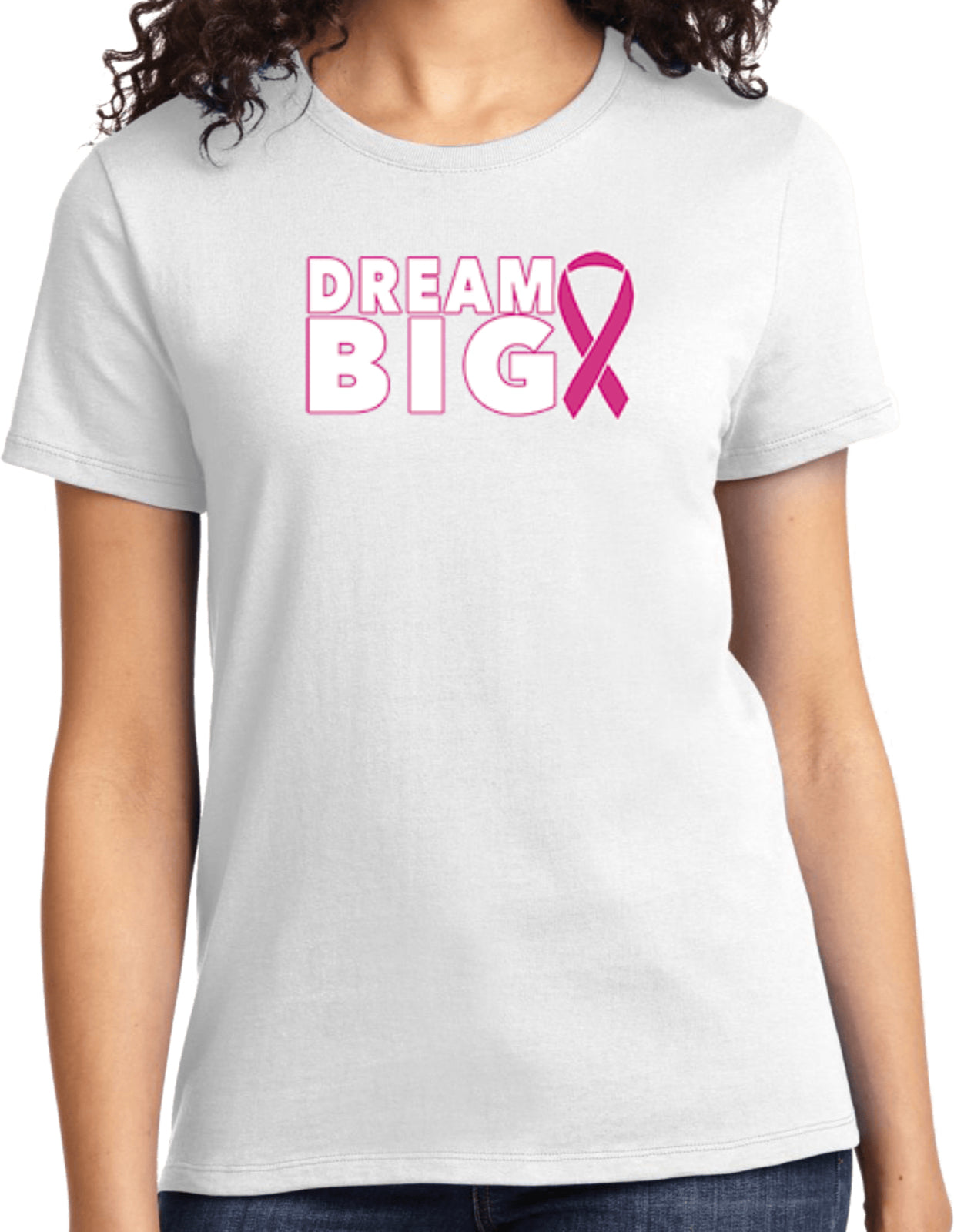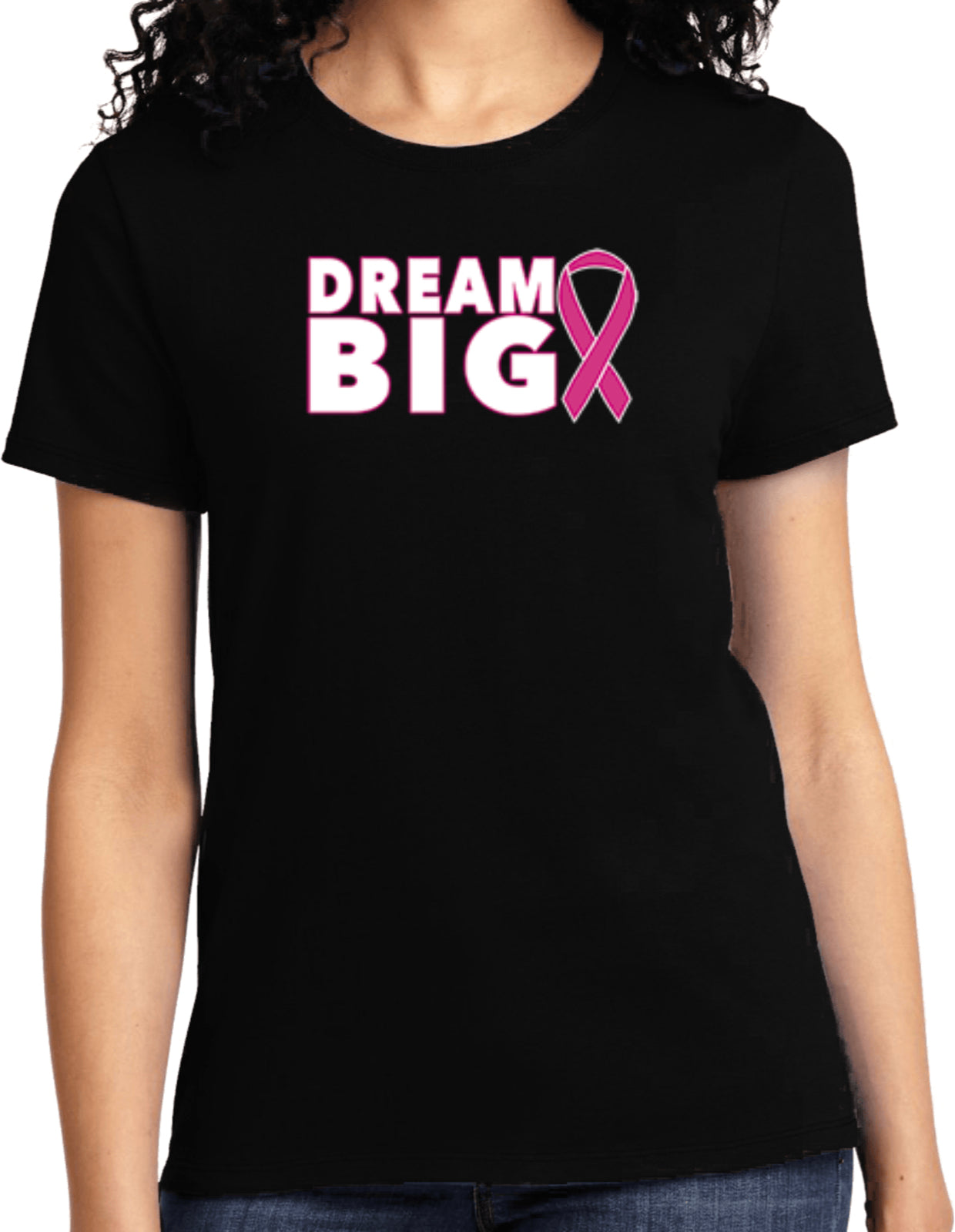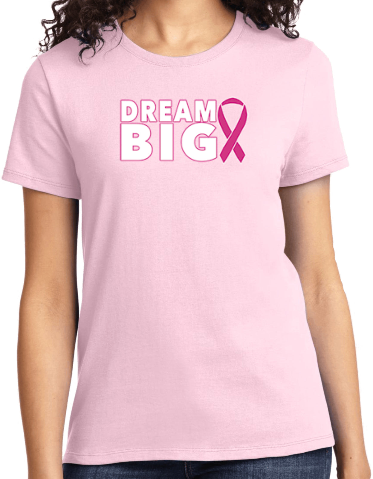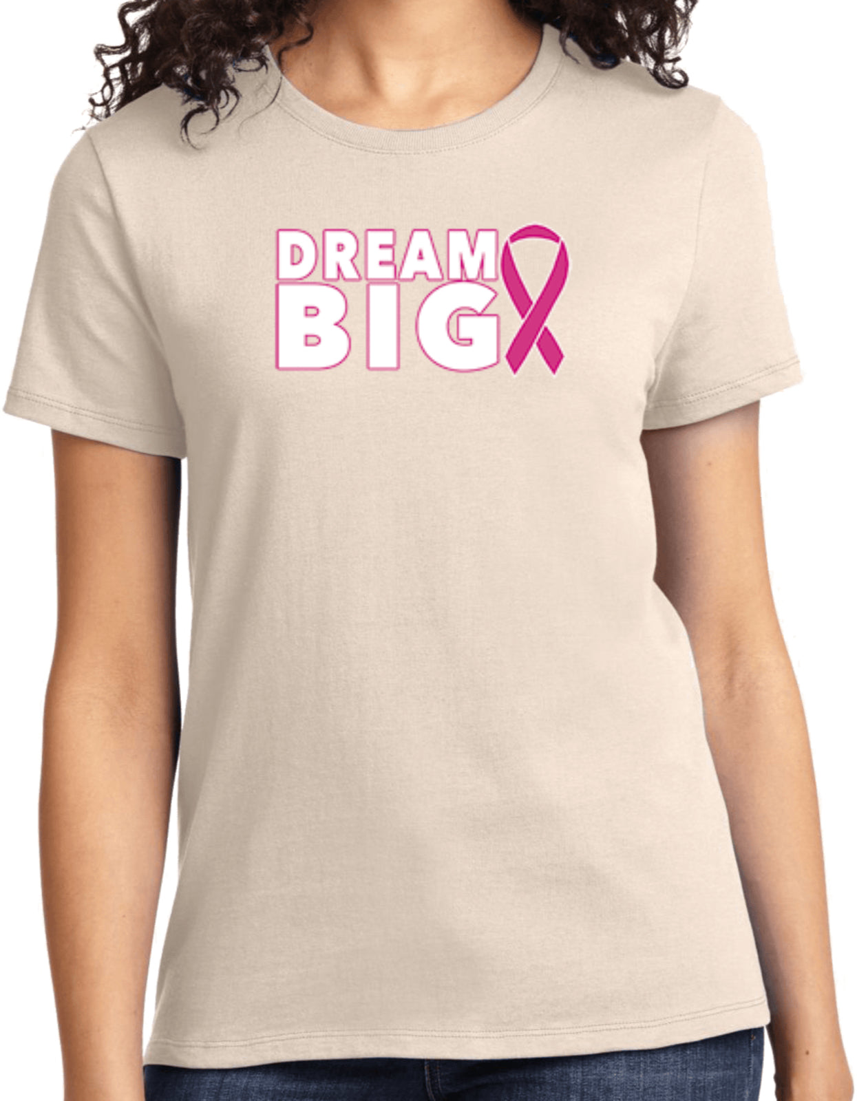 - A ladies t-shirt featuring an inspirational breast cancer awareness design: Dream Big