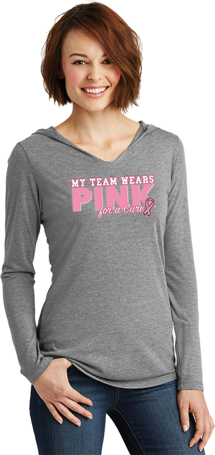 - A breast cancer ladies lightweight v-neck hoodie featuring My Team Wears Pink For a Cure