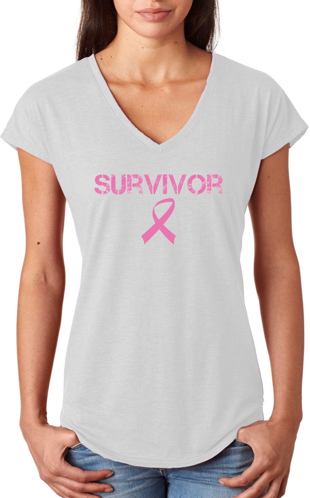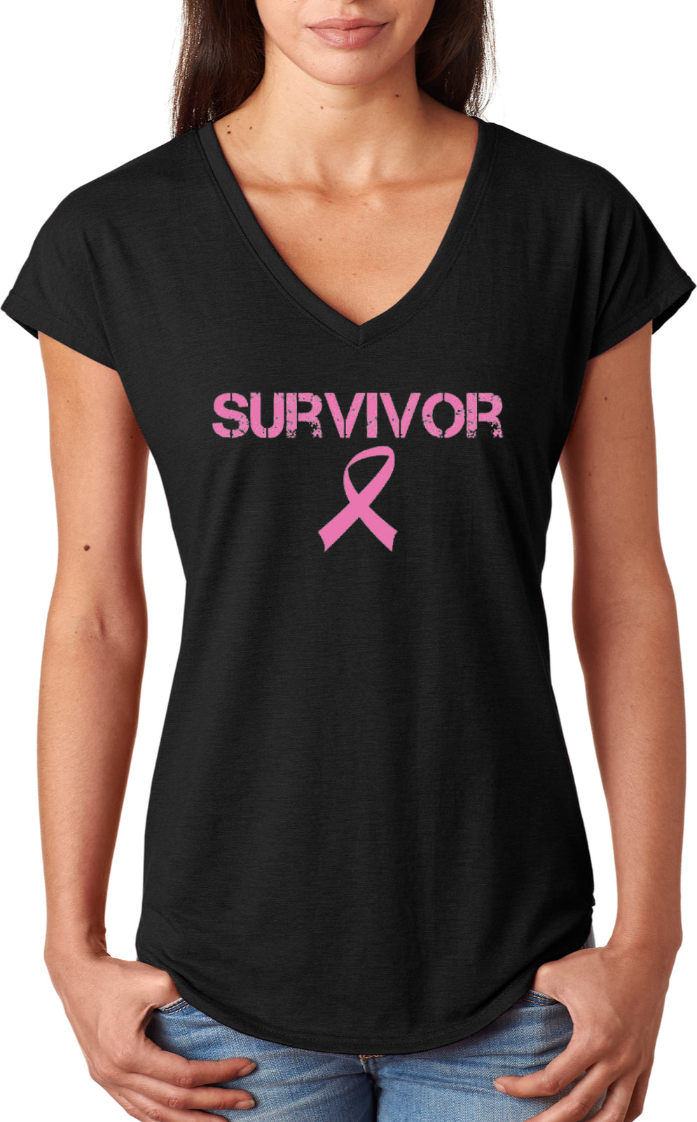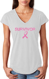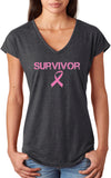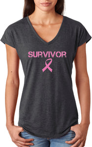 Ladies Breast Cancer T-shirt Survivor Triblend V-Neck