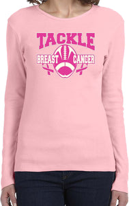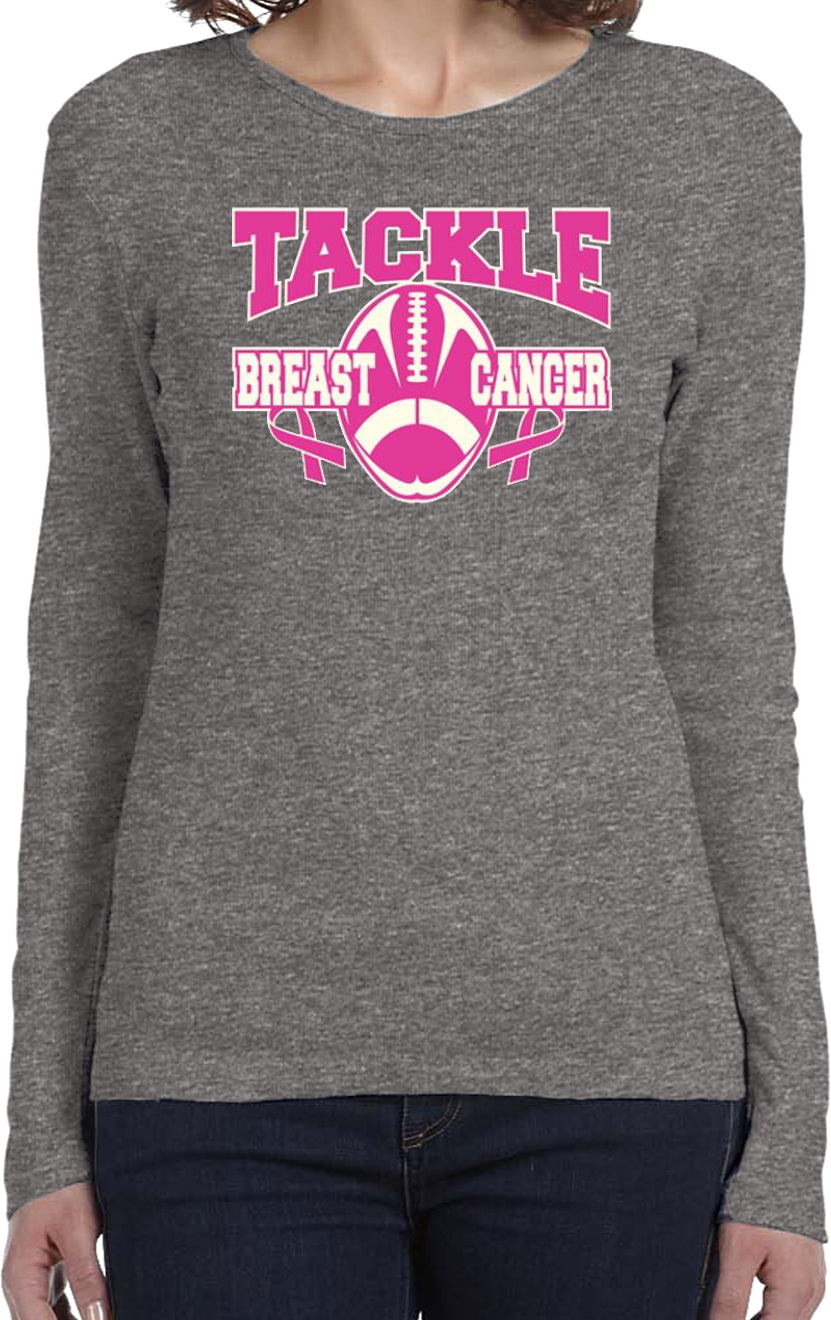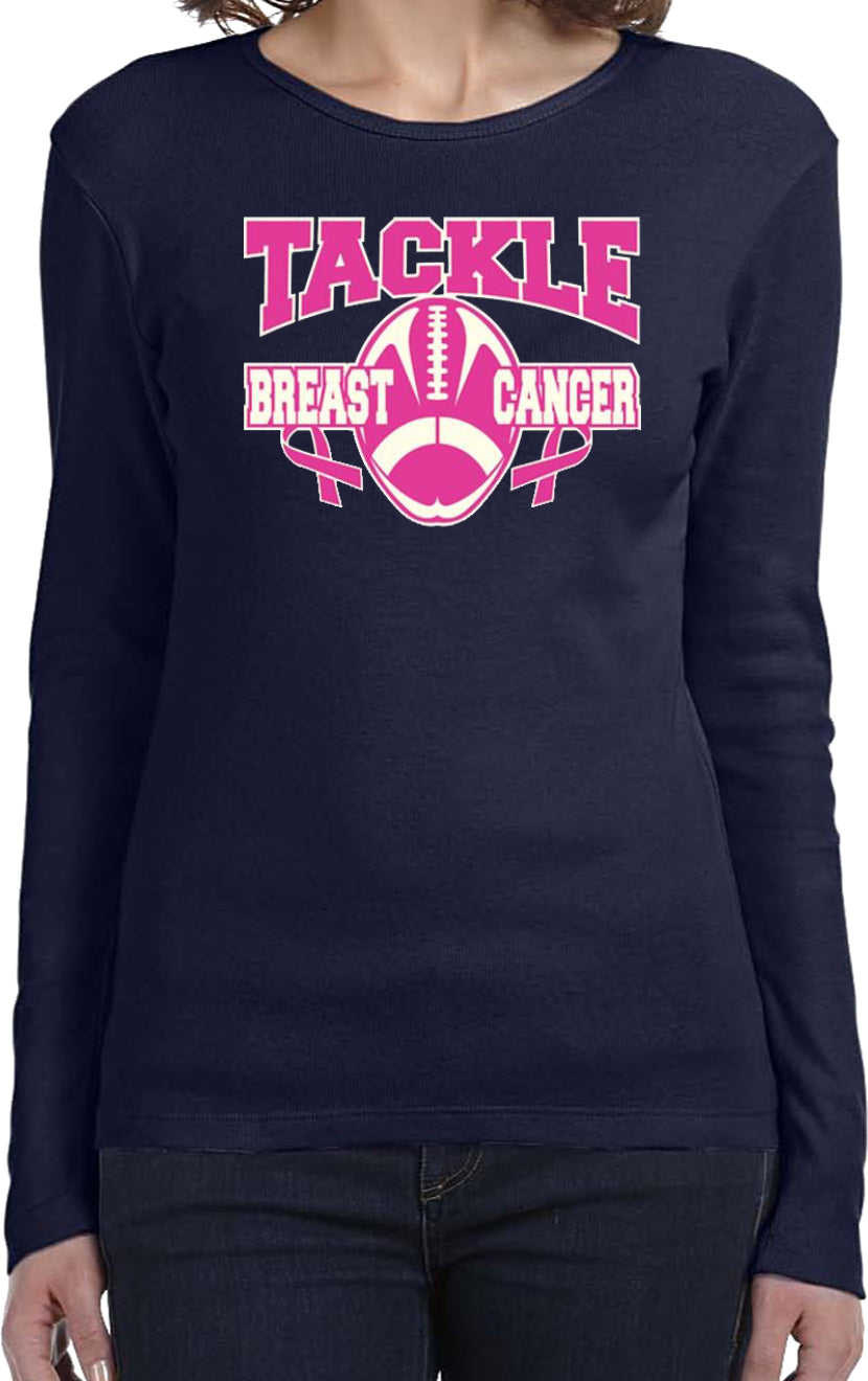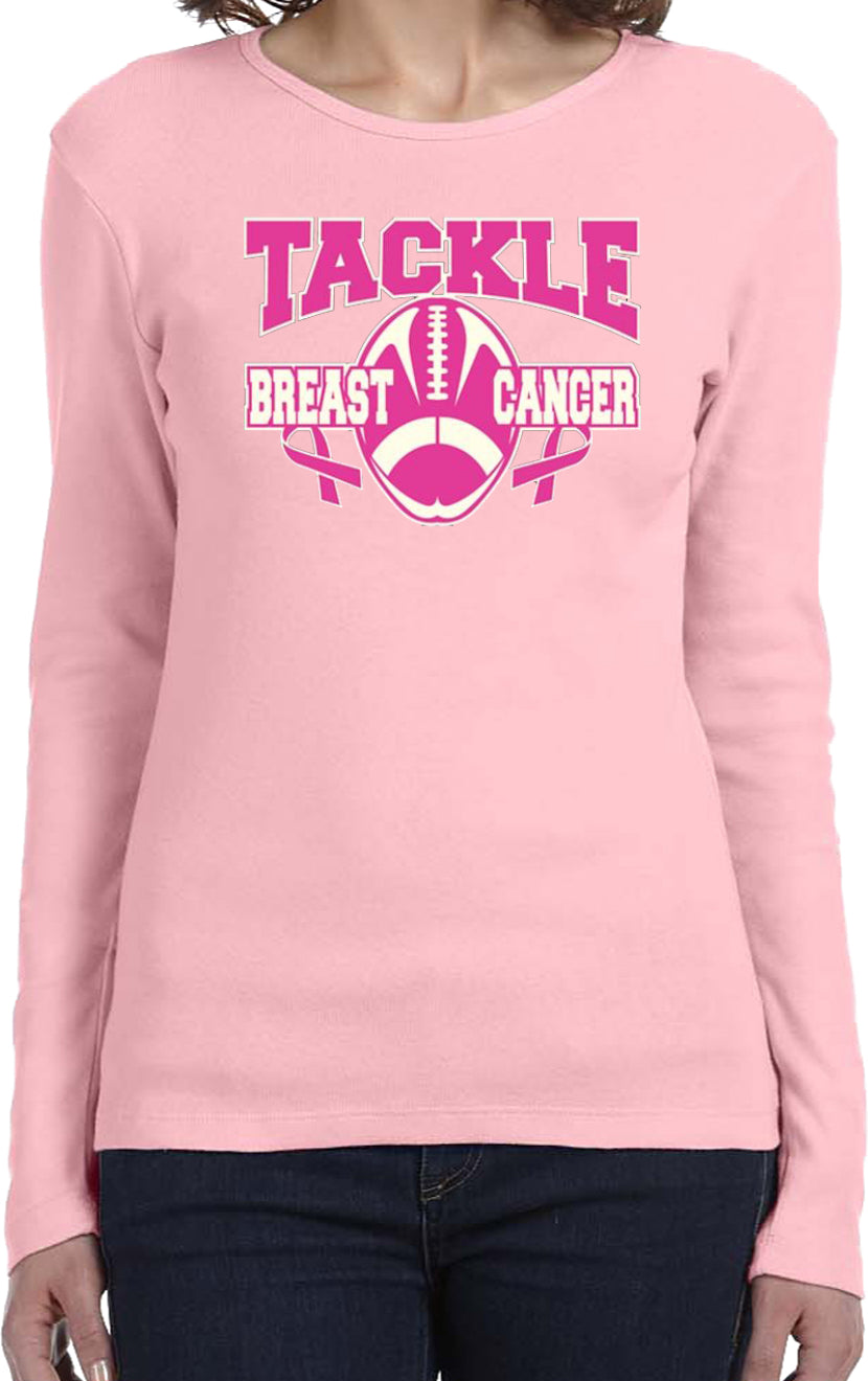 - A ladies long sleeve featuring a football inspired breast cancer awareness design: Tackle Breast Cancer