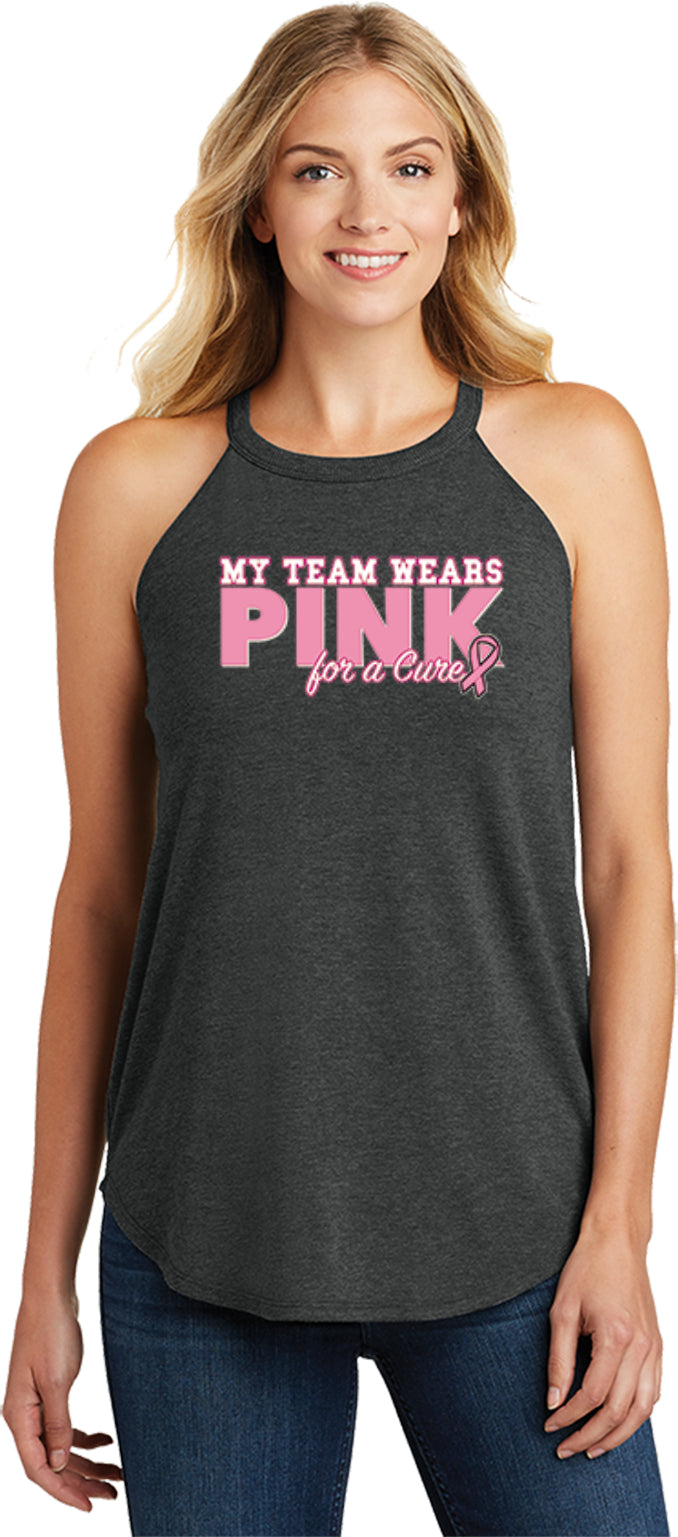 - A breast cancer ladies tank top featuring My Team Wears Pink For a Cure