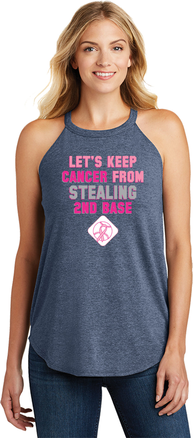 - A ladies tank top featuring a baseball inspired breast cancer awareness design: Let's Keep Cancer From Stealing 2nd Base
