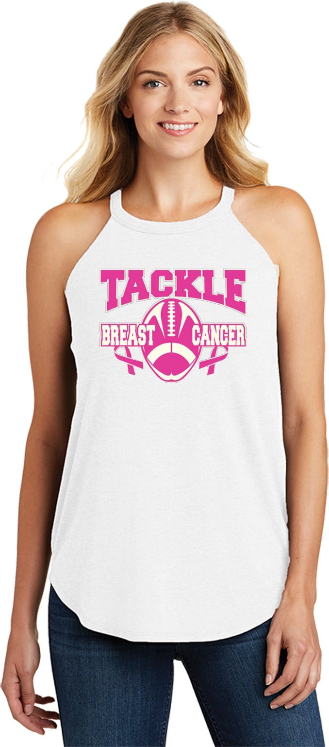 - A ladies tank top featuring a football inspired breast cancer awareness design: Tackle Breast Cancer