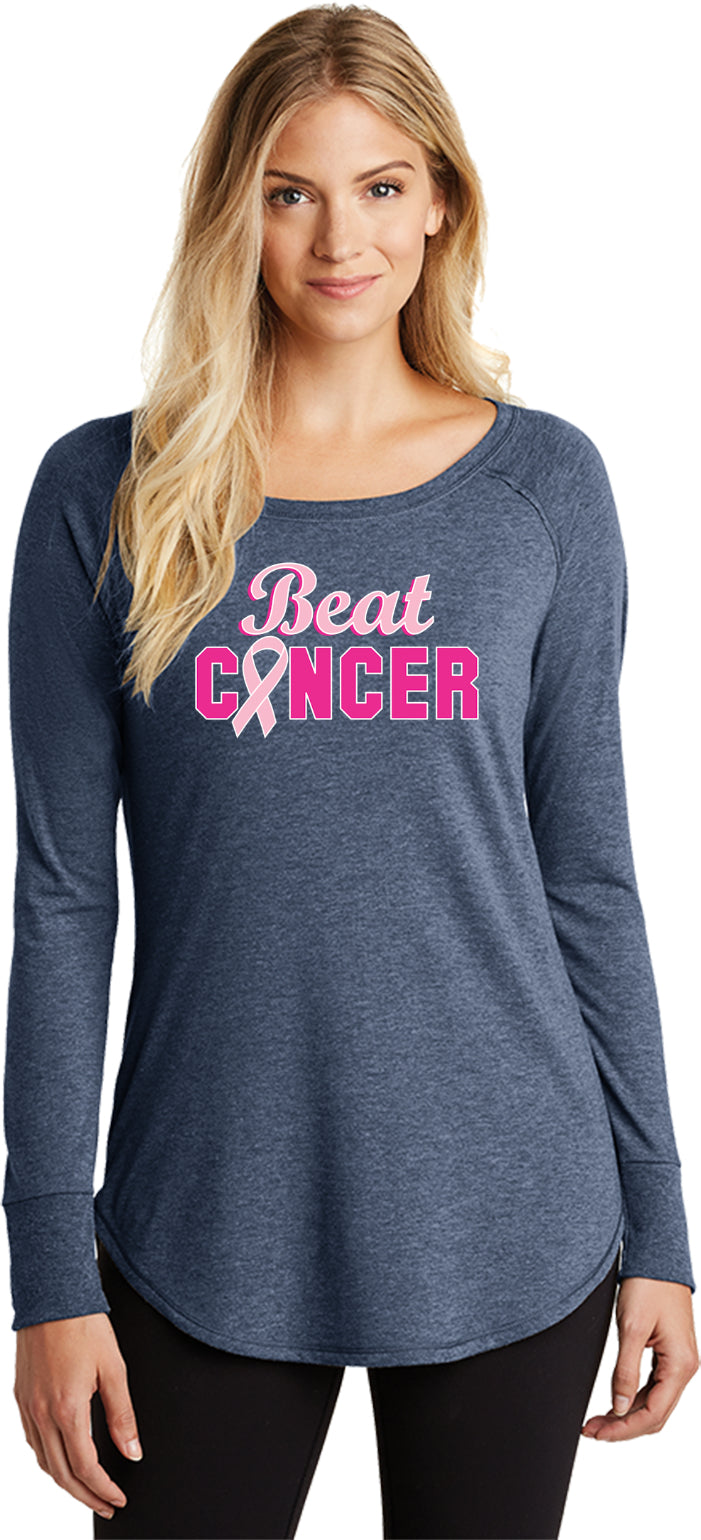 - A breast cancer awareness ladies tri blend long sleeve featuring Beat Cancer
