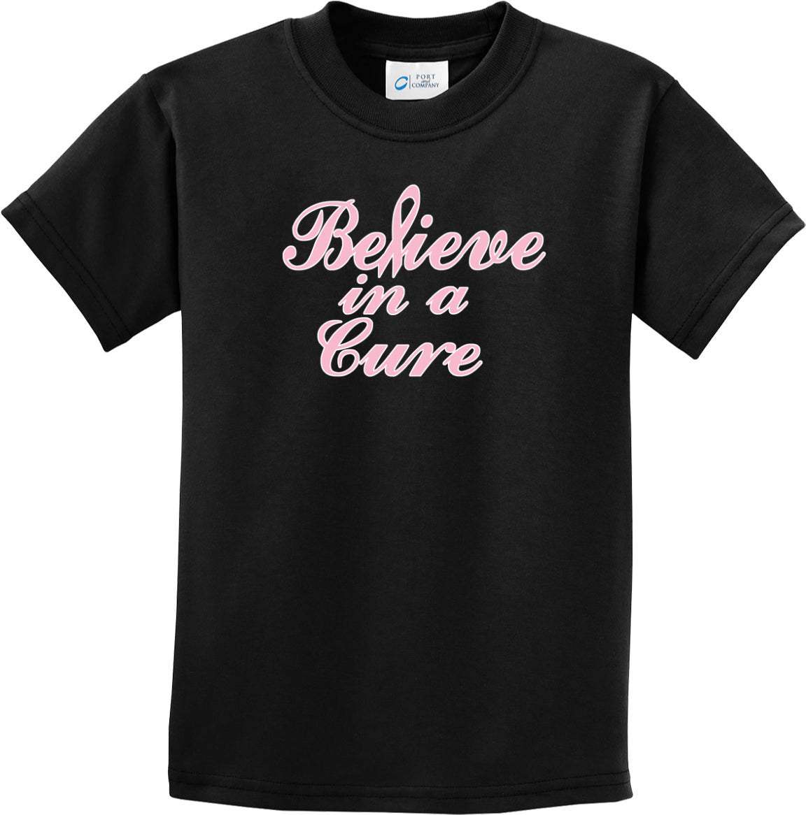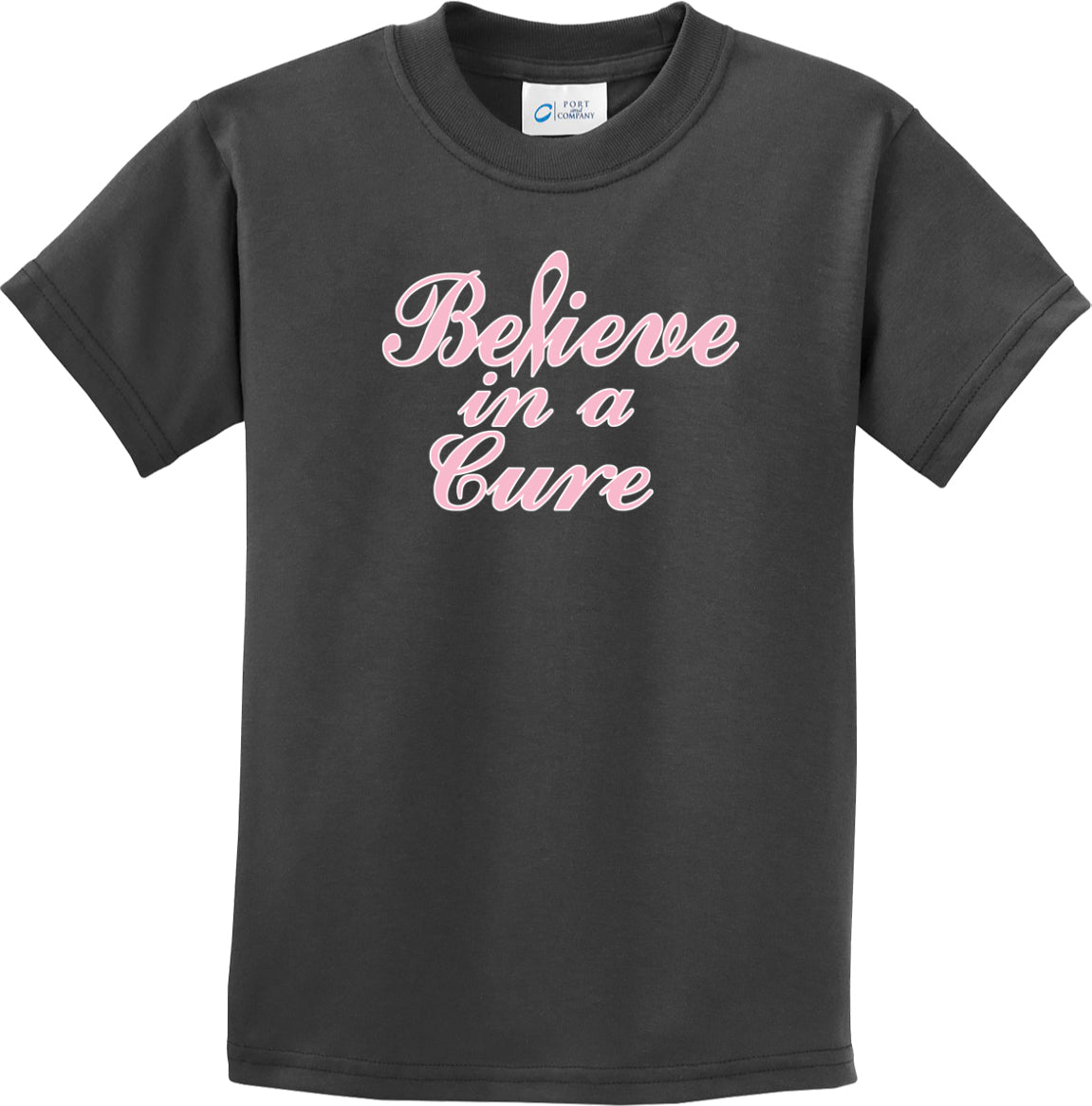 - A youth t-shirt featuring a breast cancer awareness design: Believe in a Cure