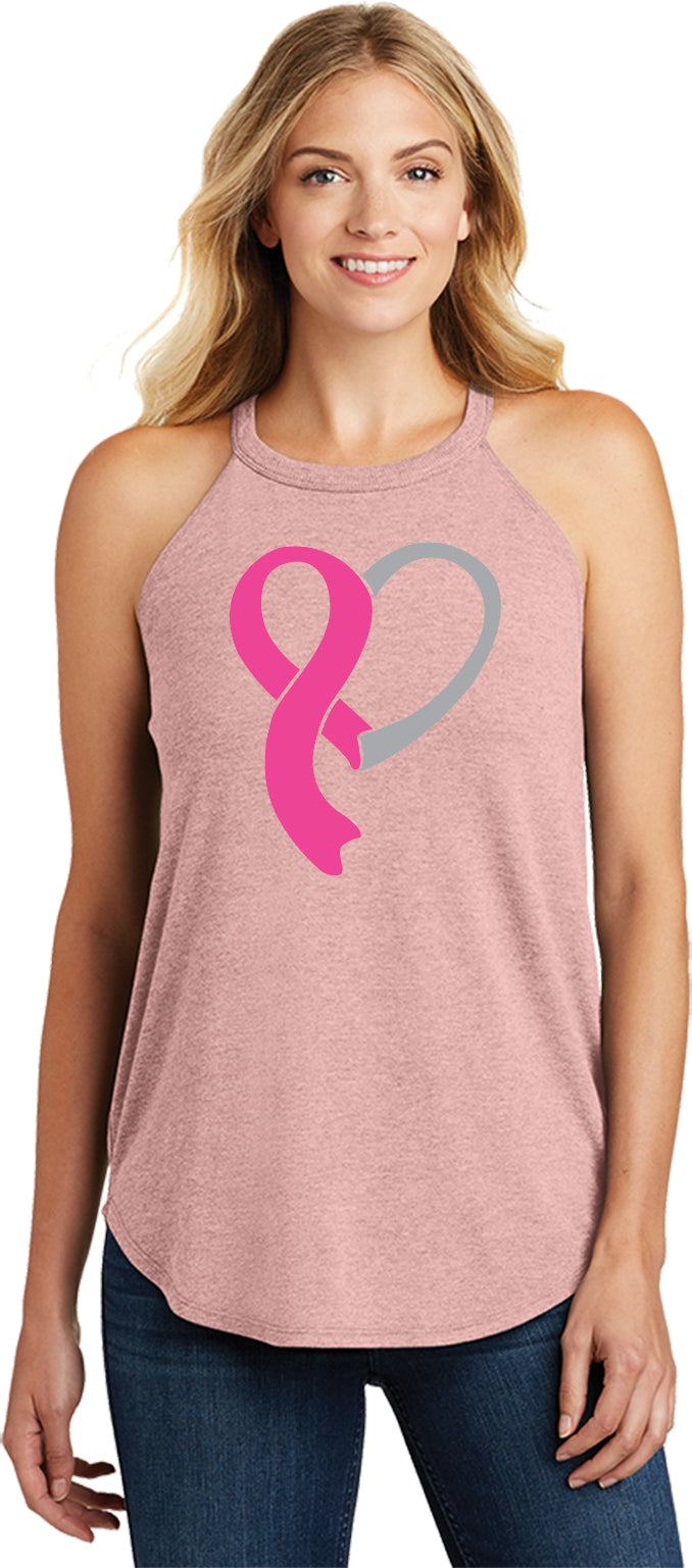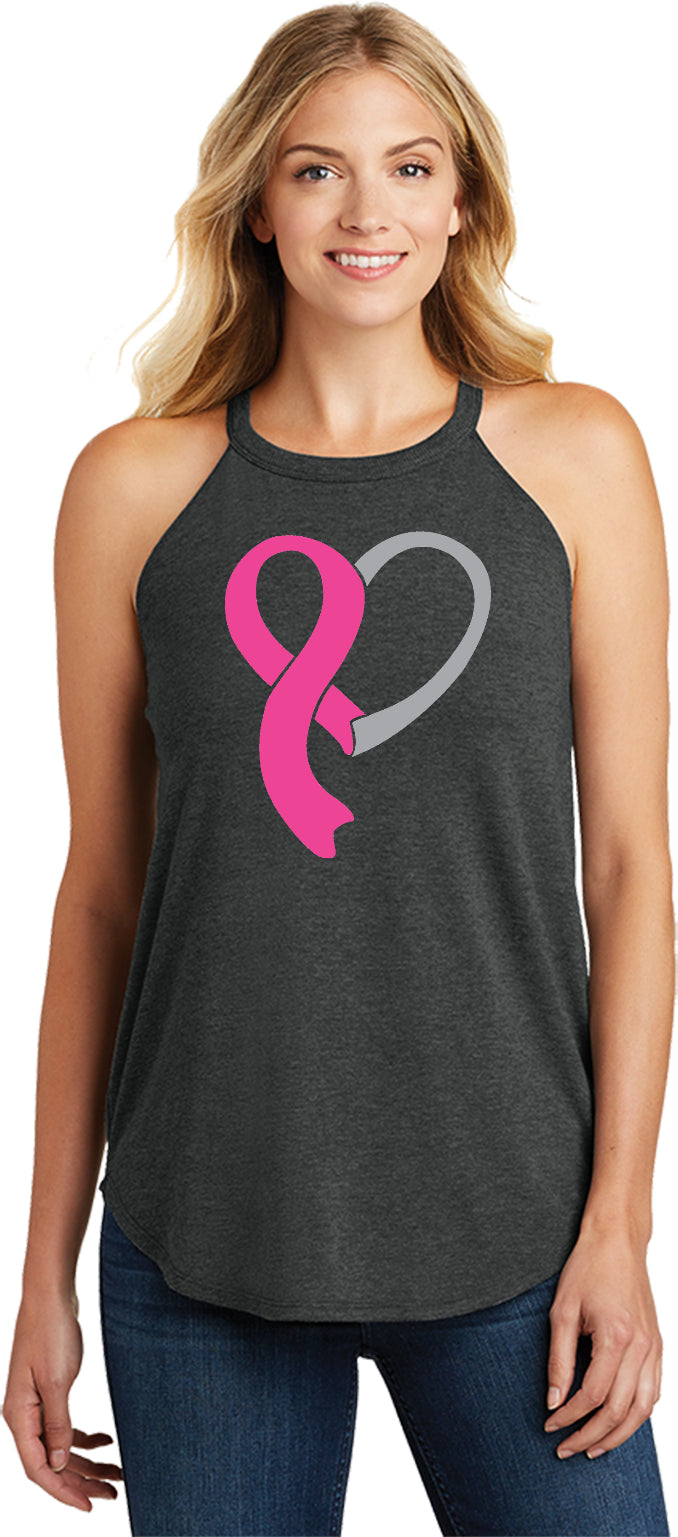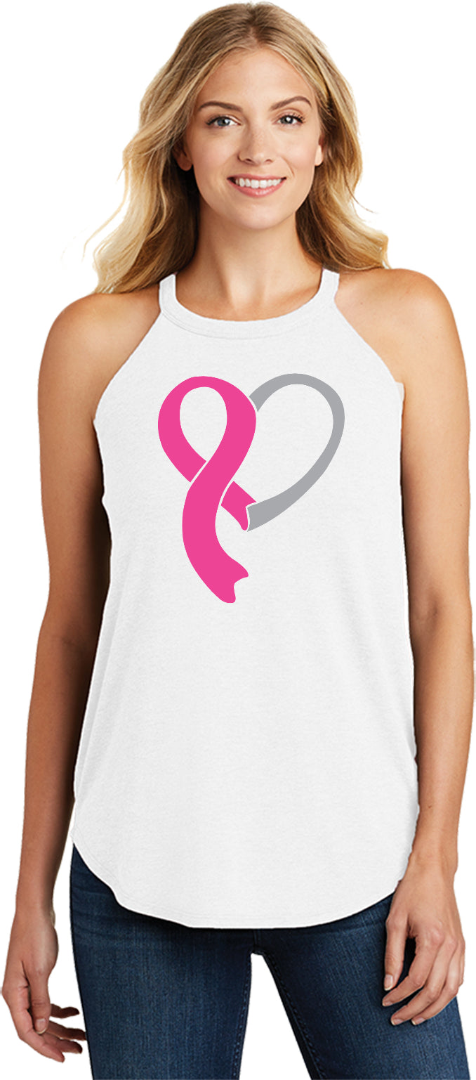 Ladies Breast Cancer Awareness Tri Rocker Tanktop Heart Ribbon