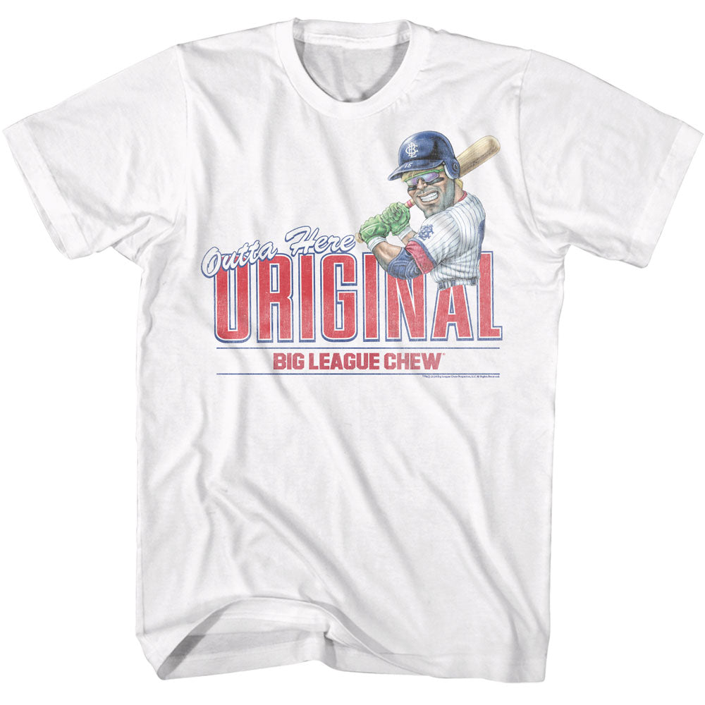 An officially licensed Big League Chew shirt that fits both men and women with its traditional silhouette. Made from comfortable 100% ring spun cotton. The t-shirt features Big League Chew Outta Here Original. This t-shirt makes the perfect gift for all who love and remember the iconic Big League Chew gum.