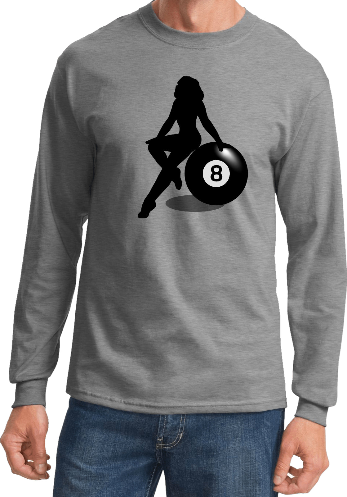 Billiards Pin Up Girl 8 Ball Long Sleeve Shirt