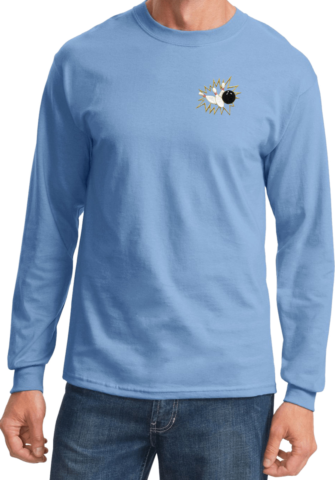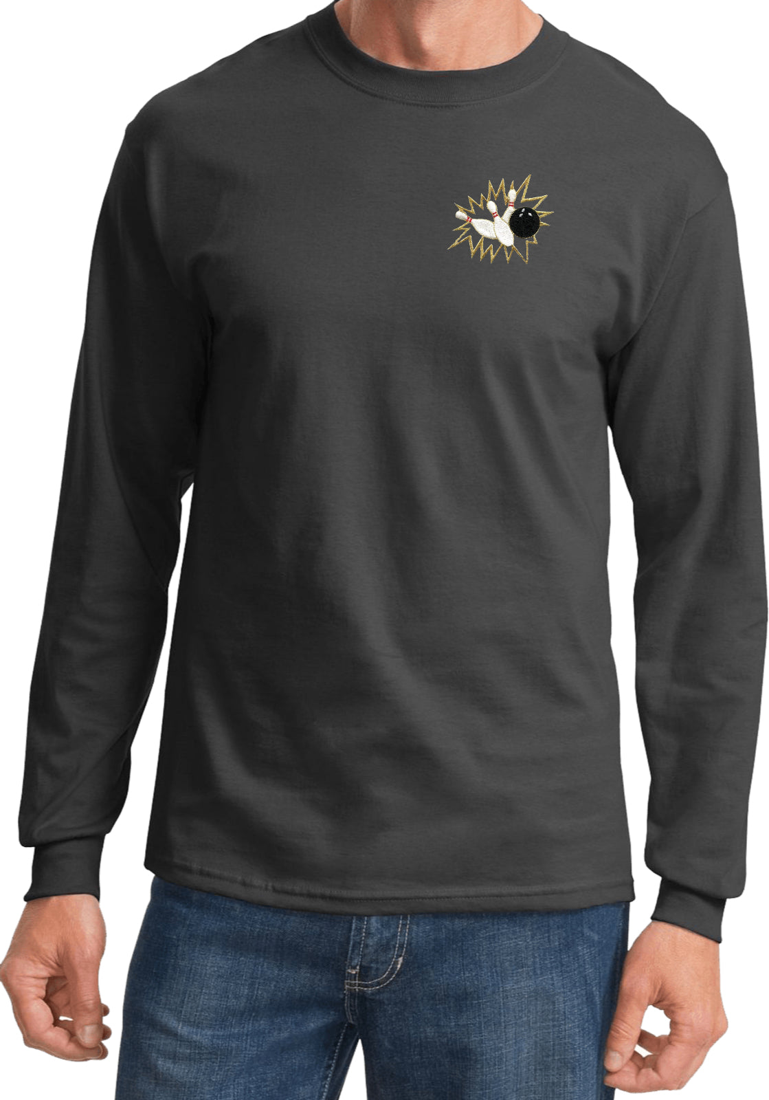 Bowling T-shirt Pins Crashing Patch Pocket Print Long Sleeve