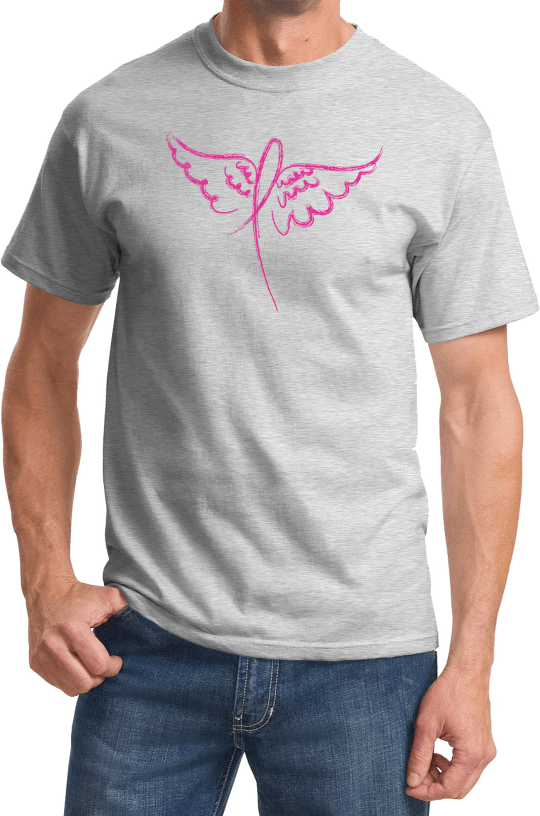 - A Breast Cancer Awareness T-shirt featuring a pink ribbon surrounded by angel wings