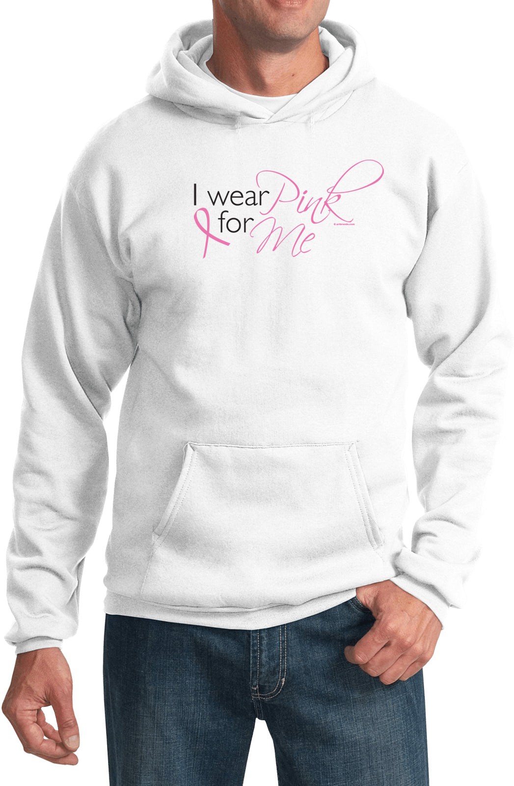 • A pullover hoodie that reads I Wear Pink for Me