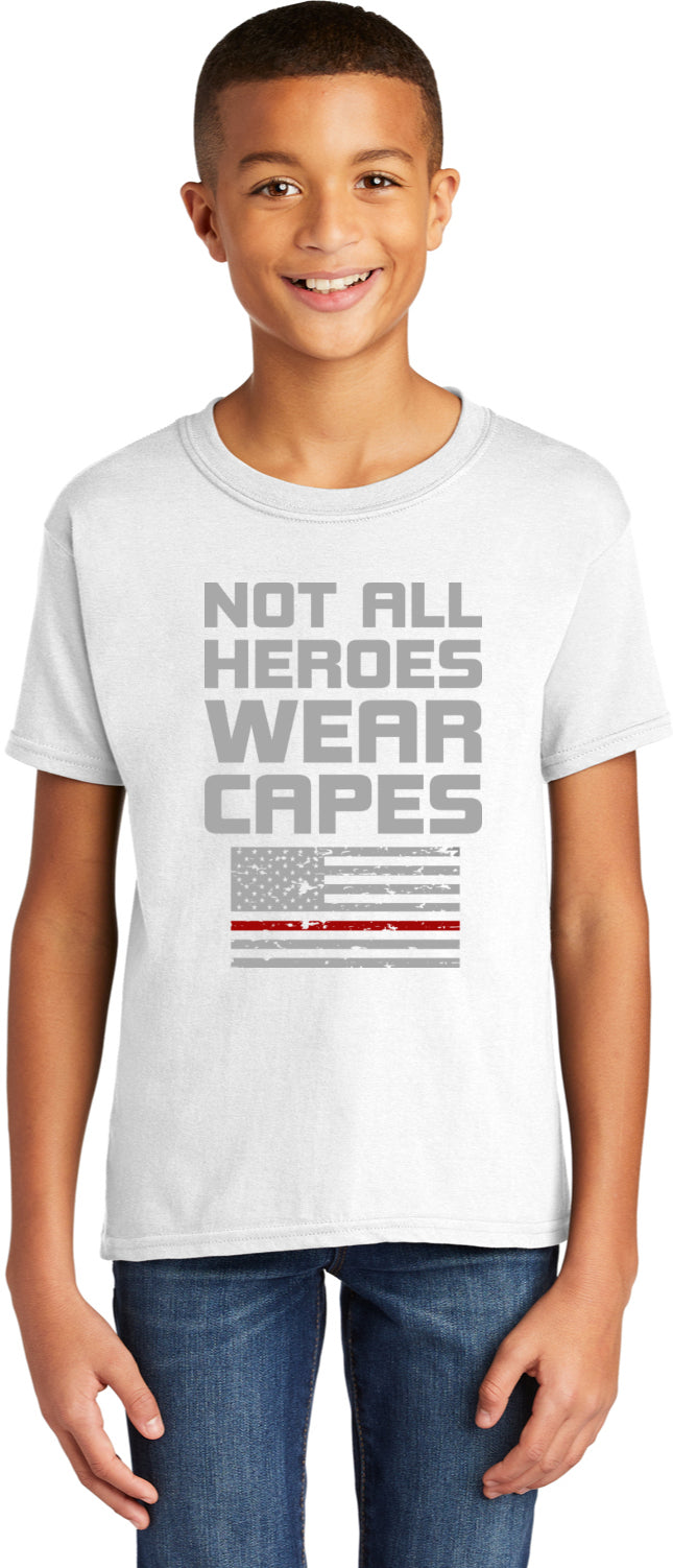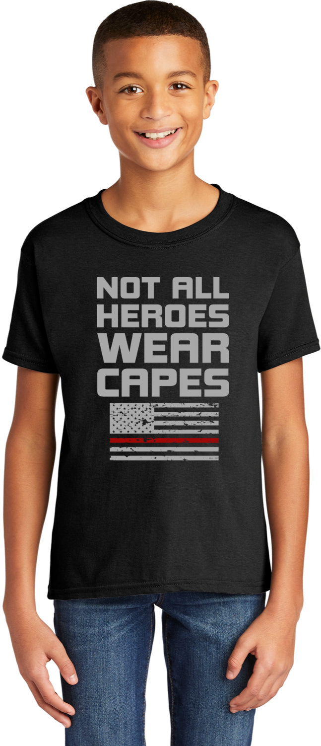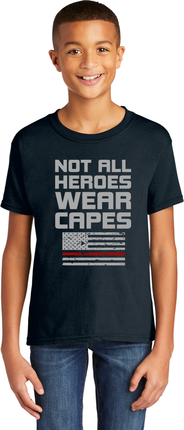 Firefighter Not All Heroes Wear Capes Youth Kids Shirt