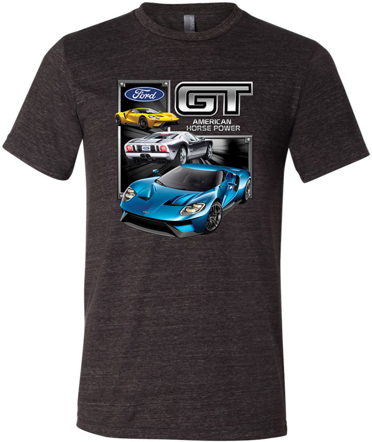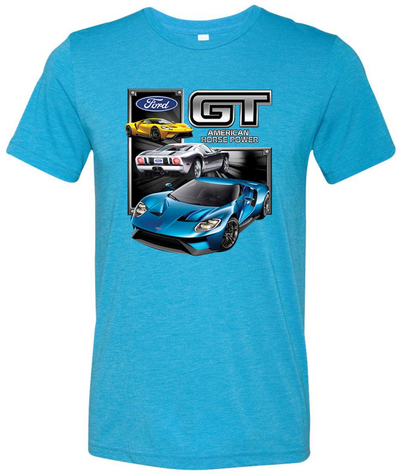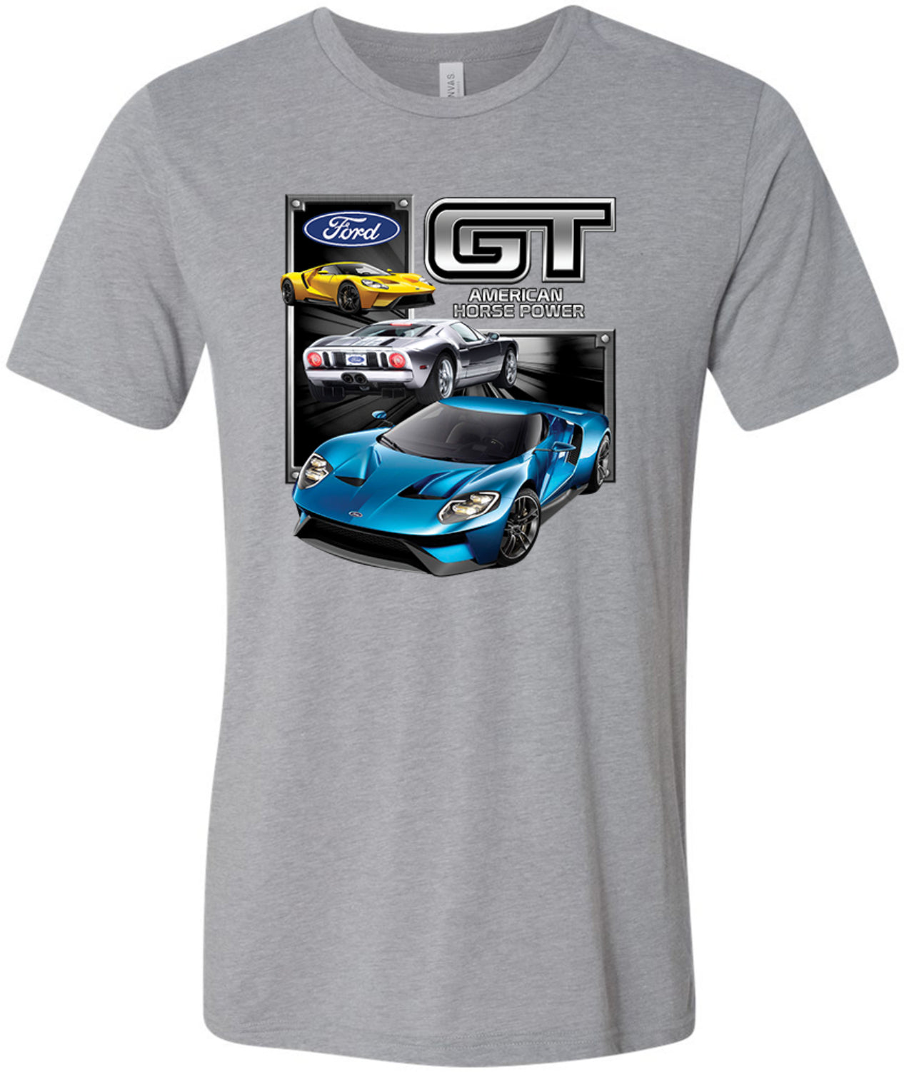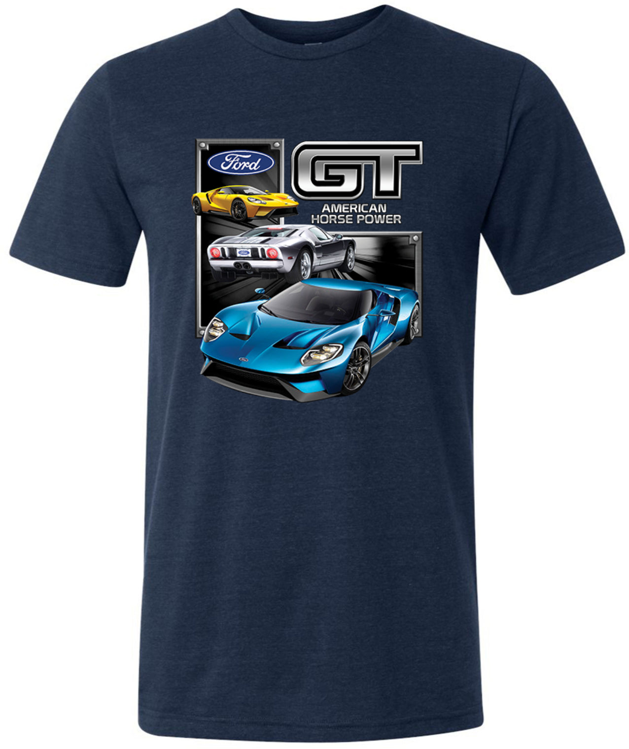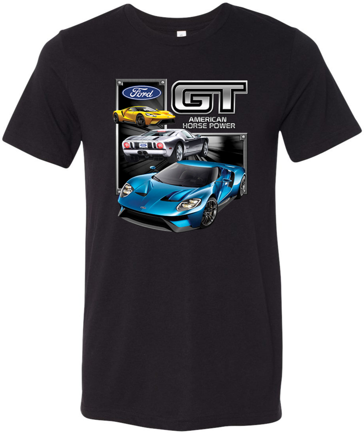 • A soft adult t-shirt featuring a collage of the Ford GT Supercar