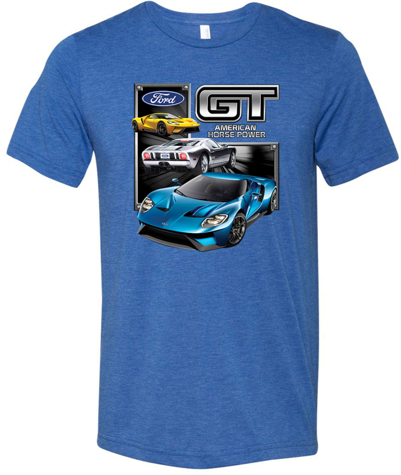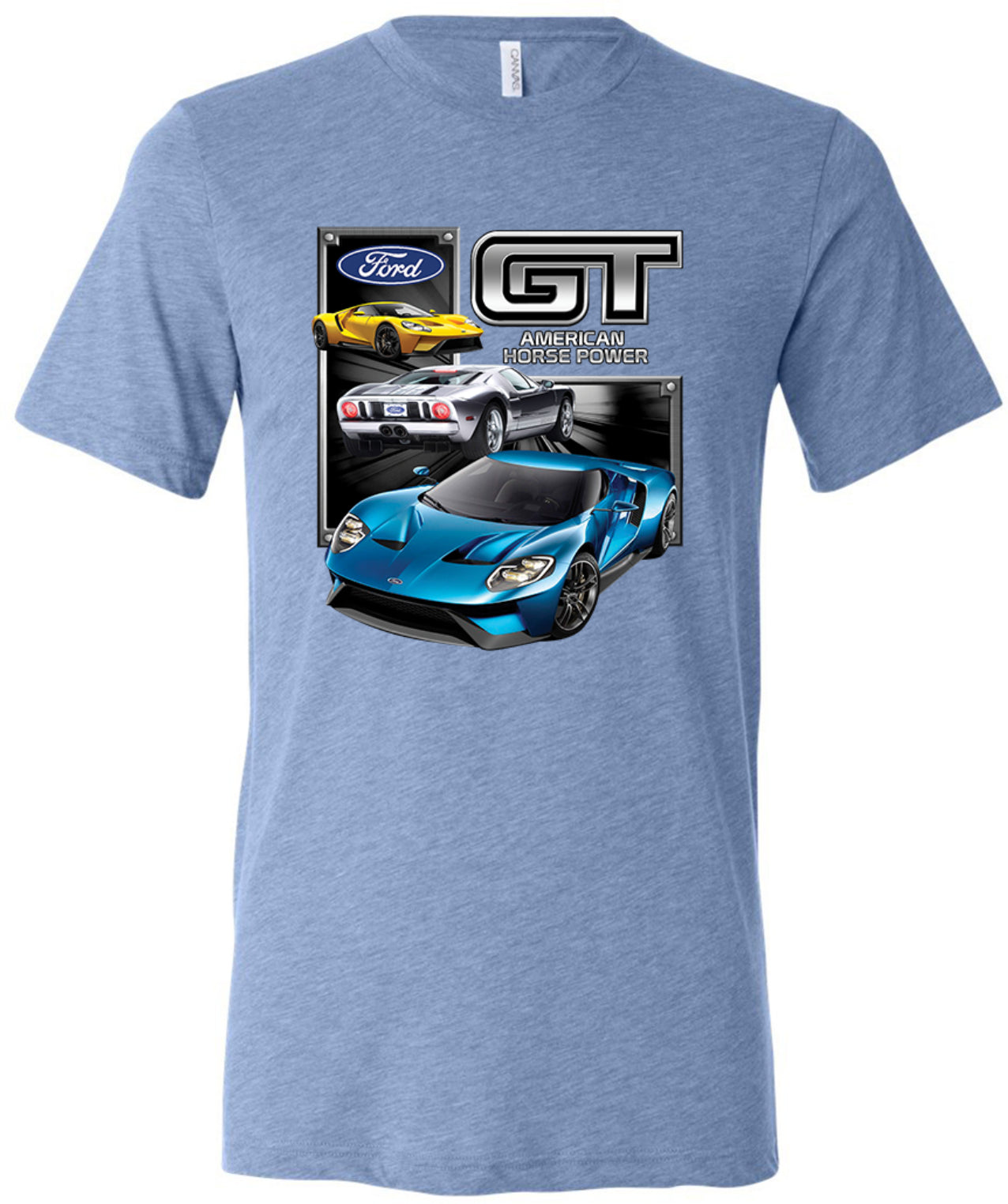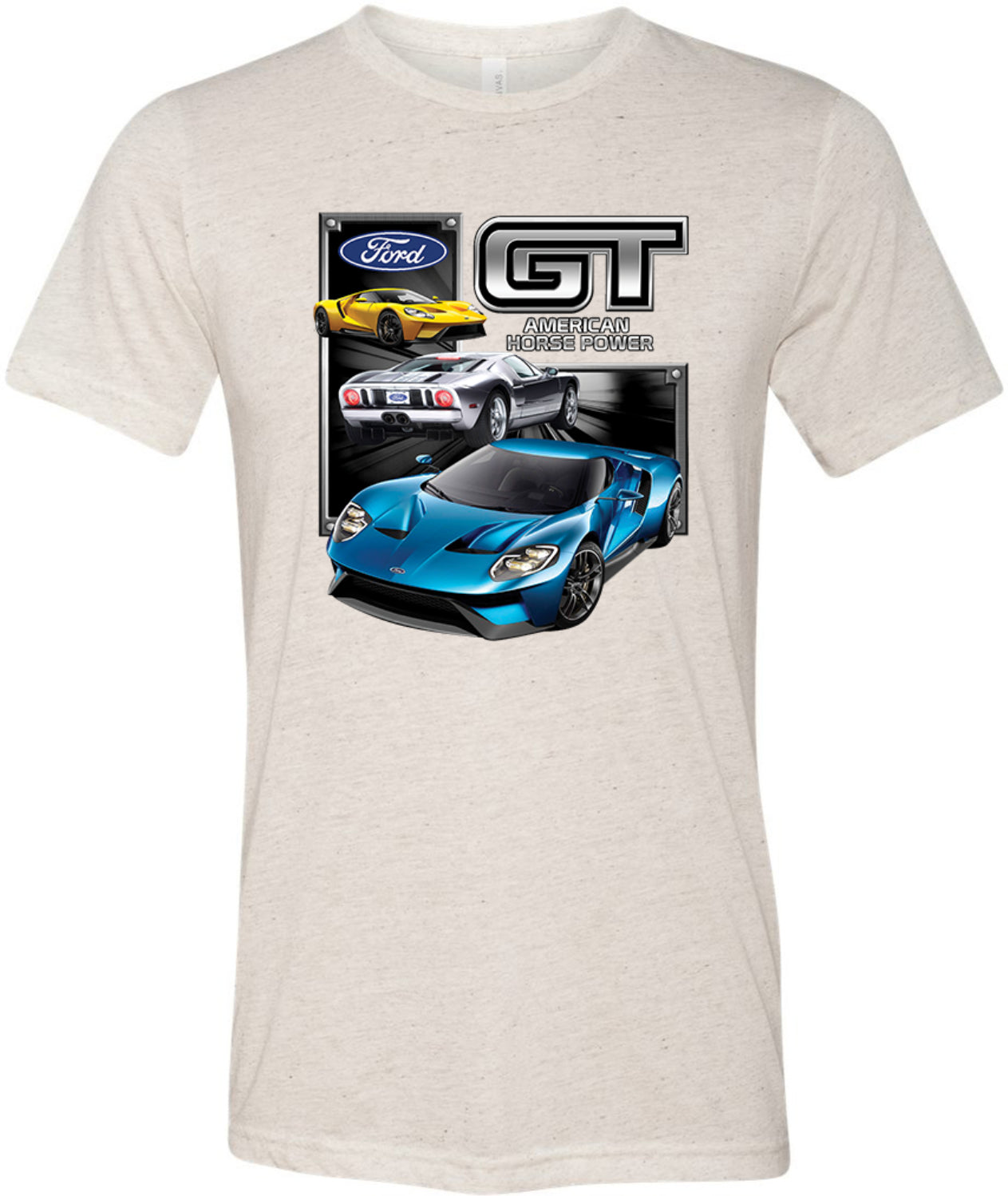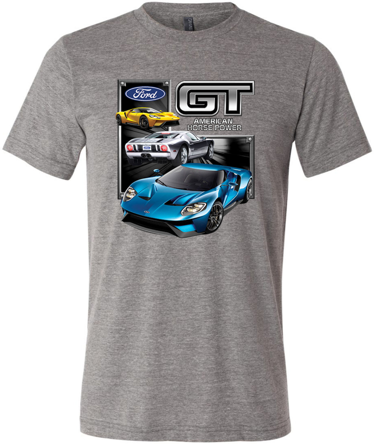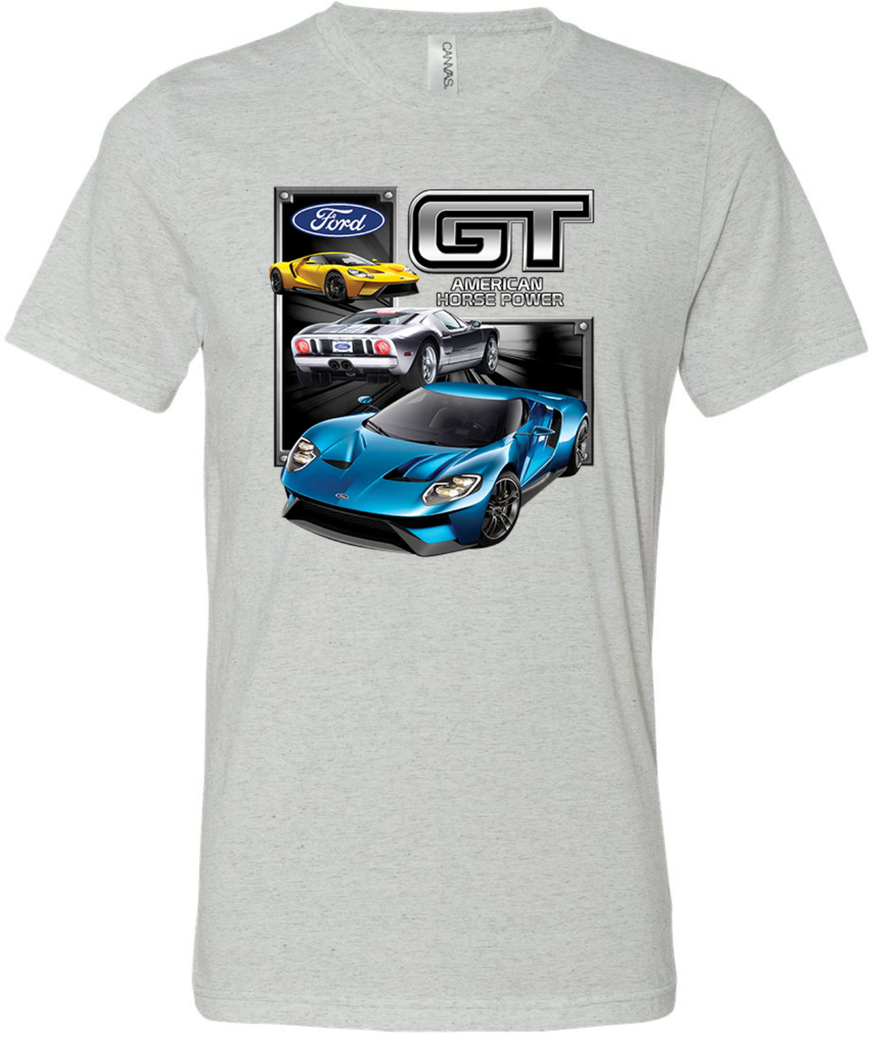 • A soft adult t-shirt featuring a collage of the Ford GT Supercar