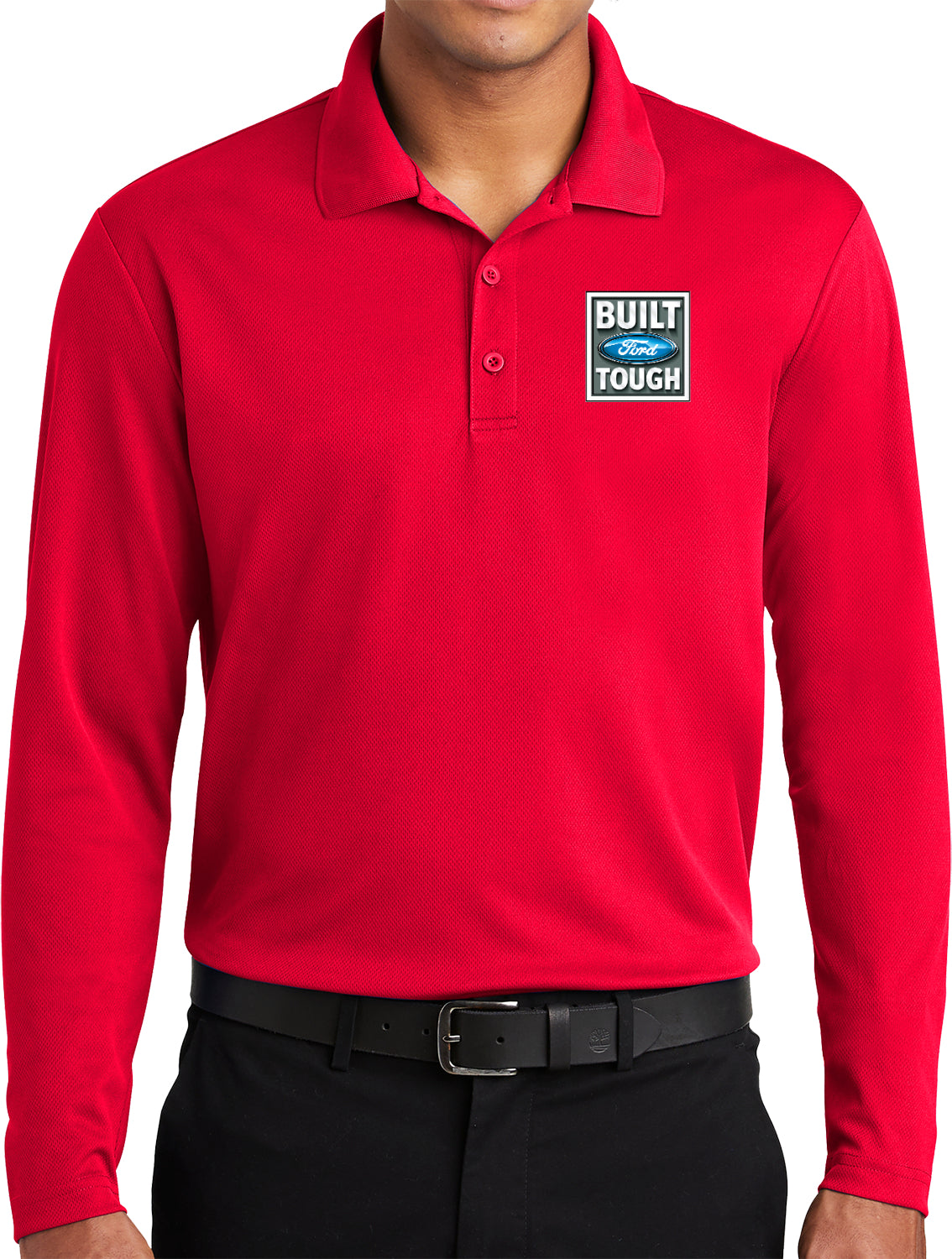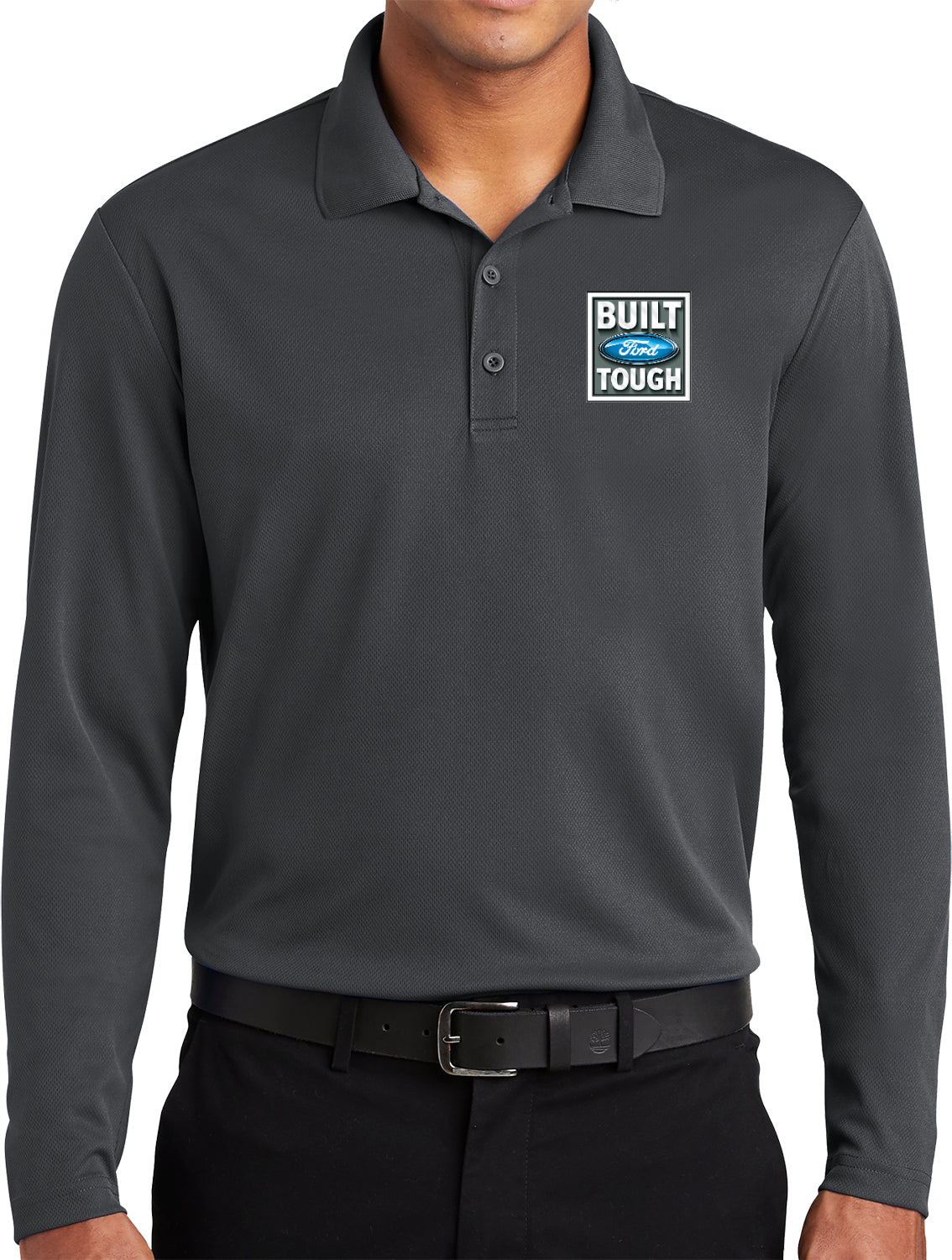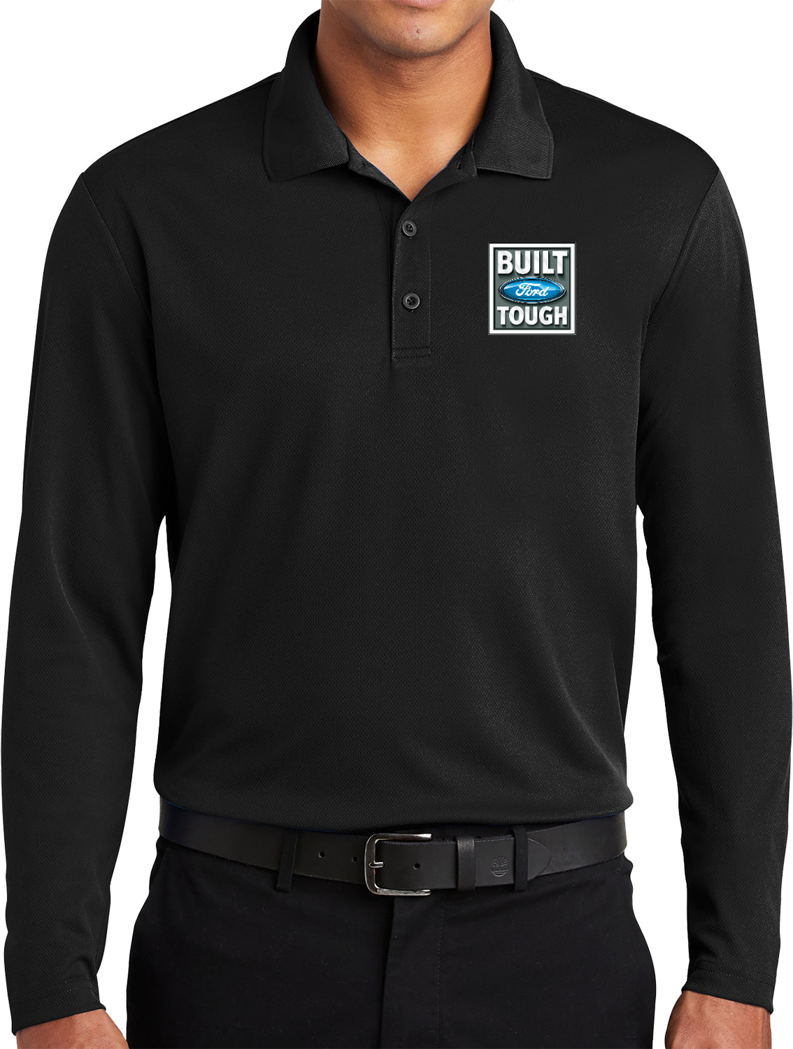 • A mens long sleeve polo shirt featuring the Built Ford Tough logo